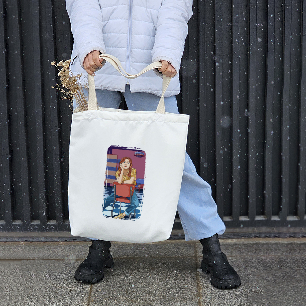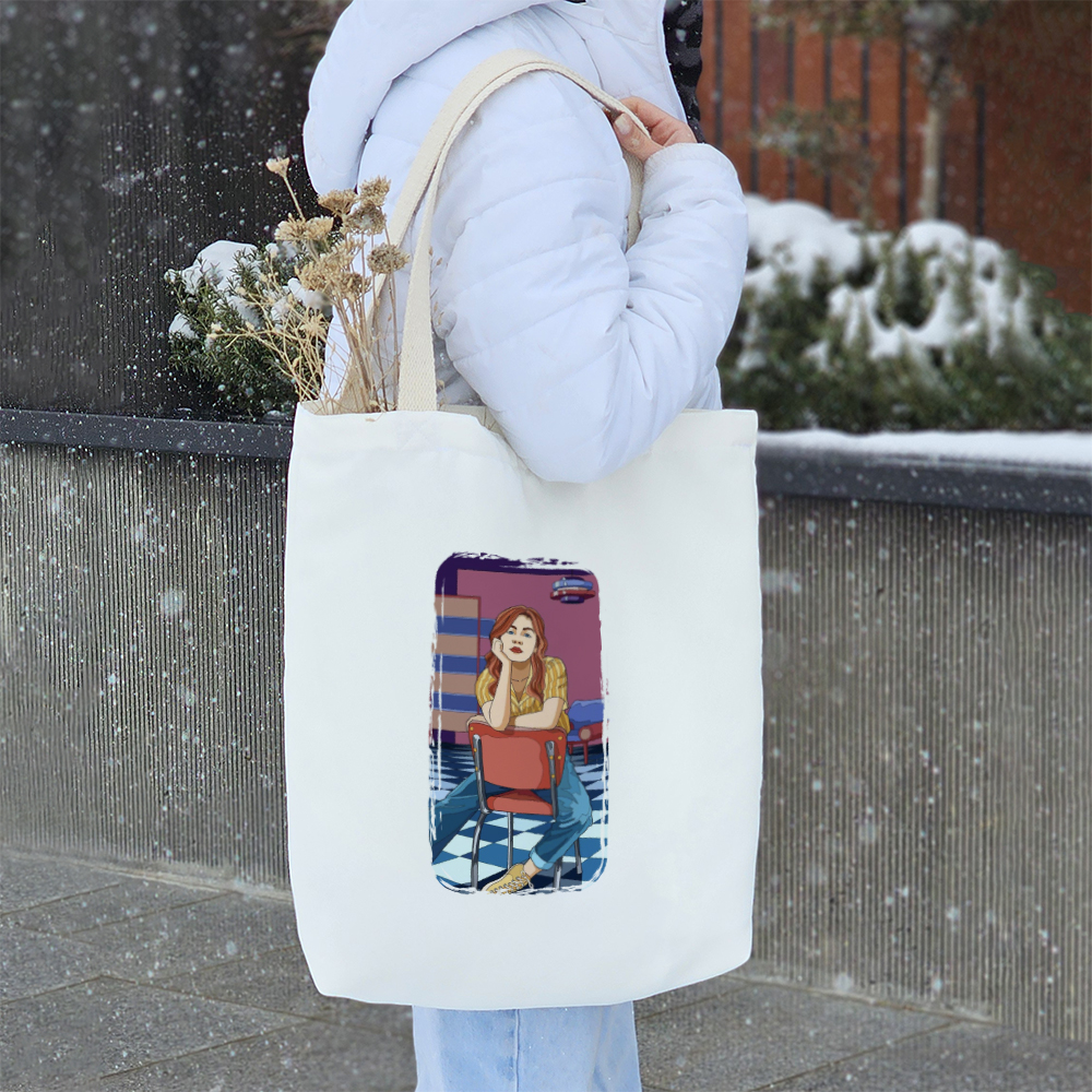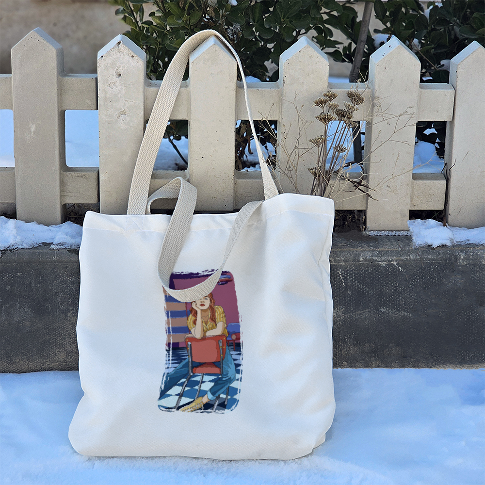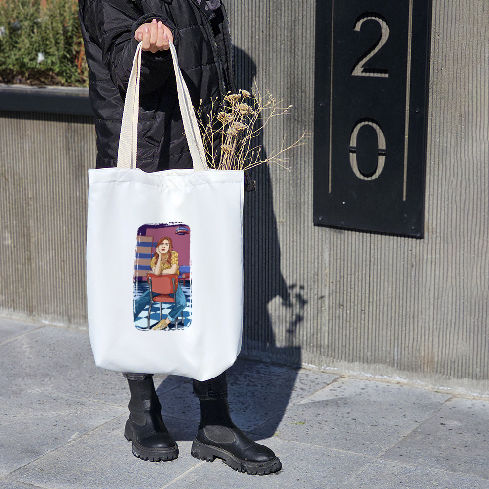 توت بگ پارچه ای دختری در کافه