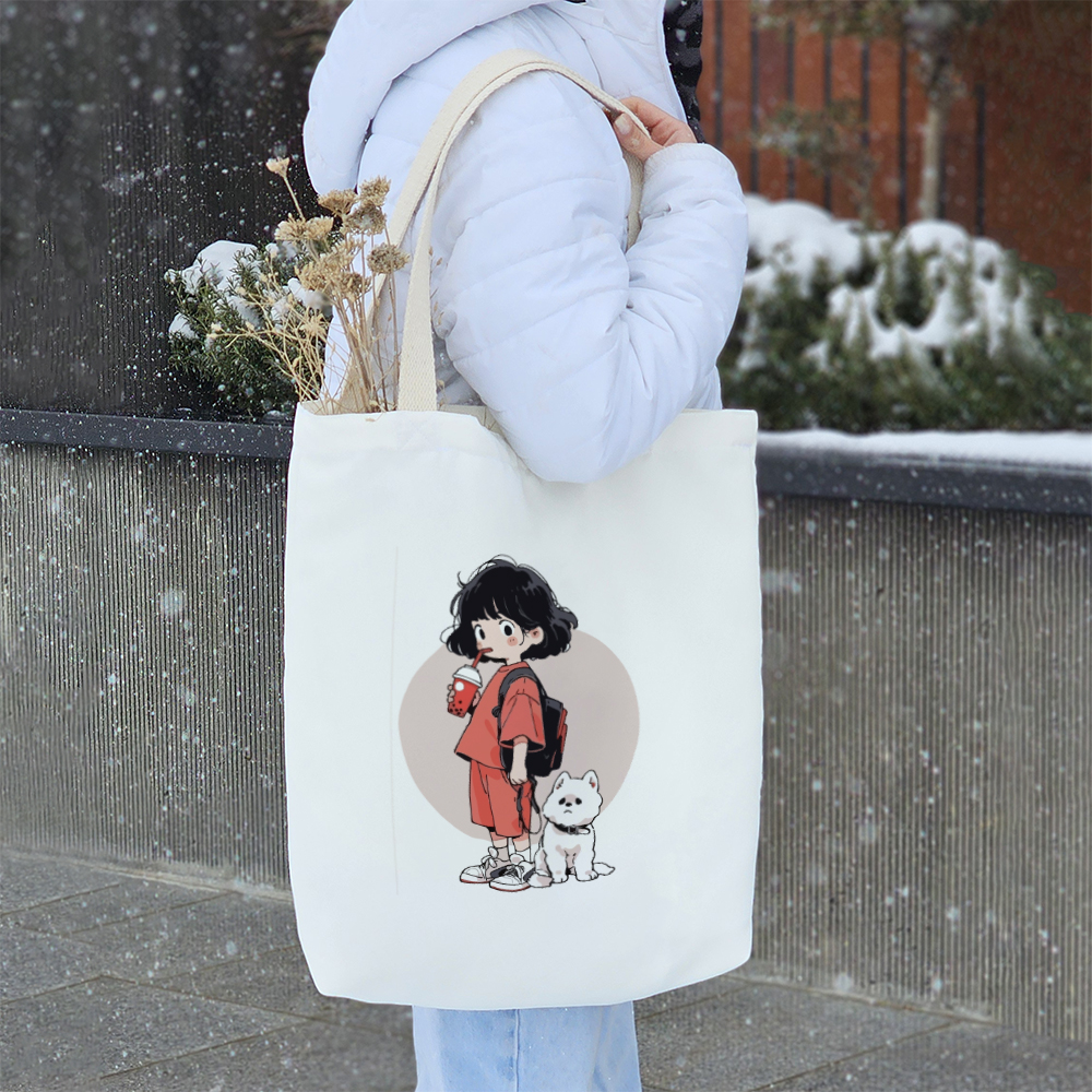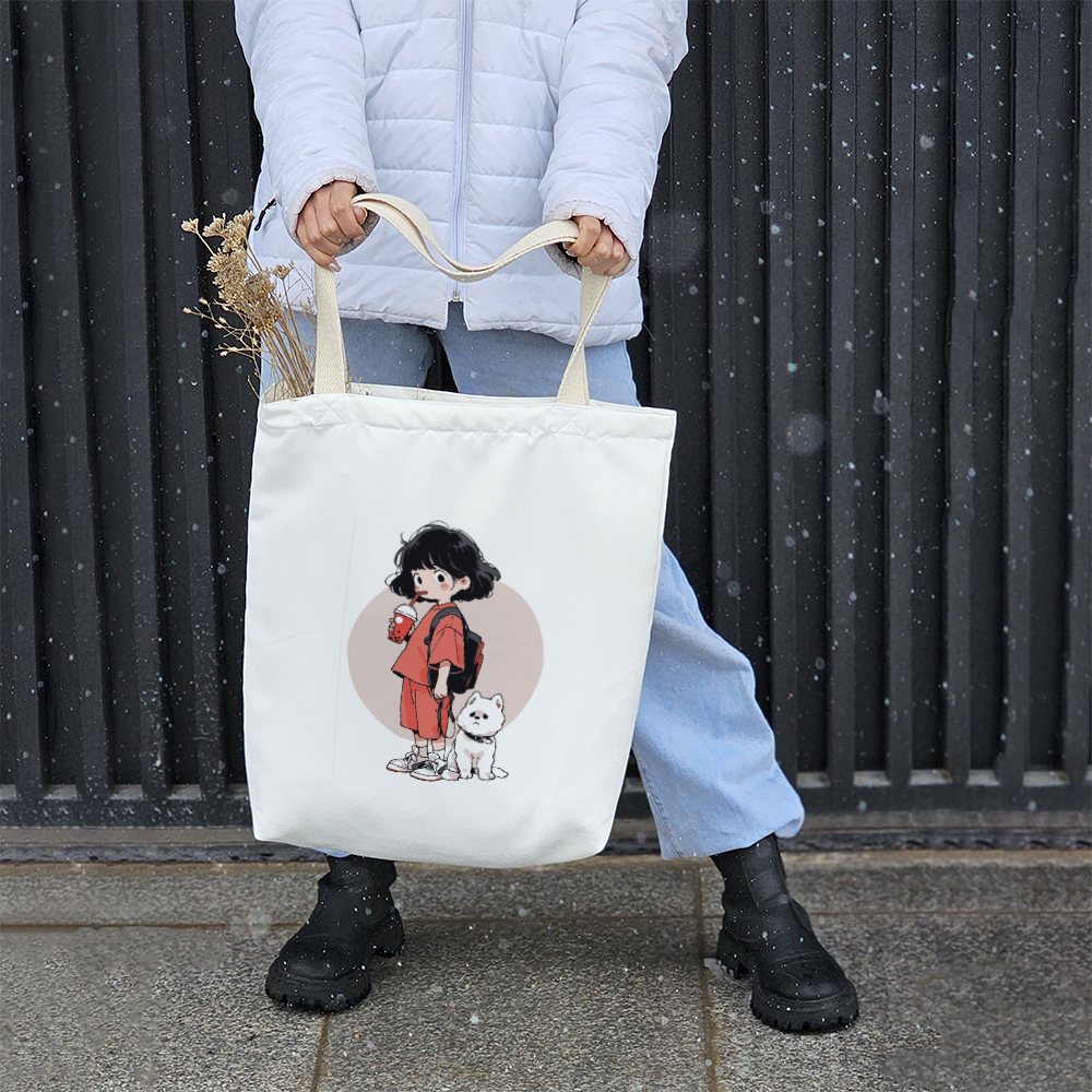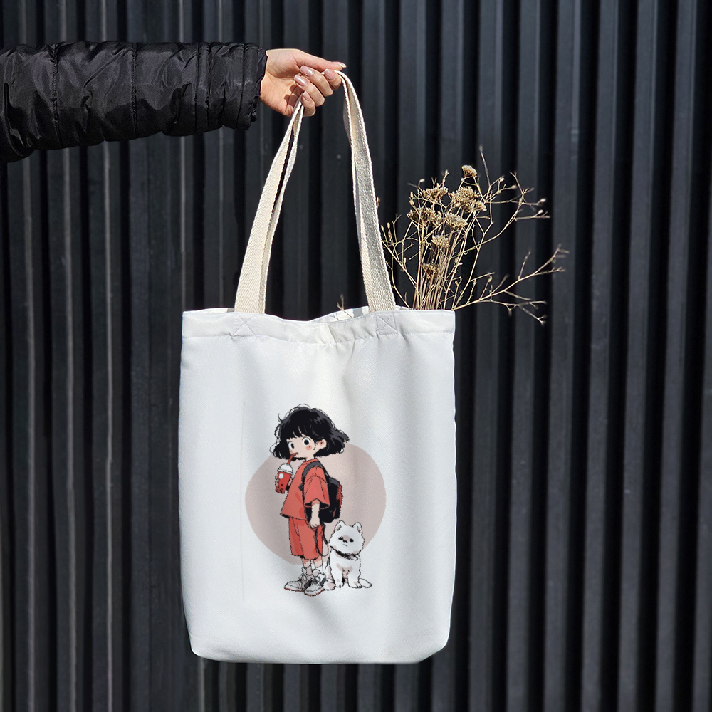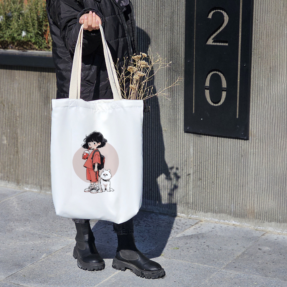 توت بگ پارچه ای دختر و سگ سفید