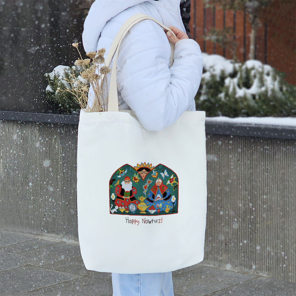 توت‌بگ‌ پارچه‌ای خندالو طرح سال نو مبارک یک انتخاب هوشمندانه، کاربردی و دوستدار محیط‌زیست هستند که می‌توانند جایگزینی مناسب برای کیف‌های چرمی و همچنین جایگزین موثری برای کاهش مصرف کیسه‌های پلاستیکی باشند. این توت‌بگ‌ها از پارچه‌ی هازان با دوام و مقاومت بالا تولید شده‌اند که علاوه بر ظاهر زیبا، کیفیت و استحکام بالایی نیز دارند. یکی از ویژگی‌های مهم این محصول، بندهای نوار پنبه‌ای ۳ سانتی‌متری دوطرفه آن است که به صورت محکم به بدنه متصل شده‌اند. این طراحی باعث می‌شود بتوانید توت‌بگ خود را هم به صورت دستی و هم به شکل دوشی استفاده کنید، بدون اینکه نگران پاره شدن یا آسیب دیدن آن باشید. ابعاد این توت‌بگ ۴۵×۵۰ سانتی‌متر است و طراحی کف پاکتی ۱۱ سانتی‌متری آن کمک می‌کند که فضای بیشتری برای وسایل خود داشته باشید و کیف هنگام حمل، فرم بهتری بگیرد. برای افزایش کارایی، داخل توت‌بگ‌ها آسترکشی شده و یک جیب داخلی کوچک در آن تعبیه شده است که به شما این امکان را می‌دهد وسایل کوچک‌تر مانند گوشی، جاکلیدی یا سایر اقلام ضروری را به صورت جداگانه نگهداری کنید. چاپ روی توت‌بگ‌ سال نو مبارک به‌صورت دیجیتال و باکیفیت بالا انجام شده که باعث دوام و ماندگاری طرح‌ها می‌شود. این محصول کاملاً قابل شستشو است و می‌توانید آن را بدون نگرانی از تغییر رنگ یا آسیب دیدن، هم با ماشین لباسشویی و هم به‌صورت دستی بشویید. یکی دیگر از مزایای توت‌بگ‌ خندالو طرح سال نو مبارک، بسته‌بندی شیک و زیبای آن است که باعث می‌شود این محصول گزینه‌ای ایده‌آل برای هدیه دادن باشد. شما می‌توانید این توت‌بگ‌ها را به عنوان کیف روزمره، ساک خرید یا کیف همراه برای حمل اقلام ضروری خود استفاده کنید و در عین حال به کاهش مصرف پلاستیک و حفظ محیط‌زیست نیز کمک کنید. انتخابی زیبا، کاربردی و پایدار برای سبک زندگی شما!
