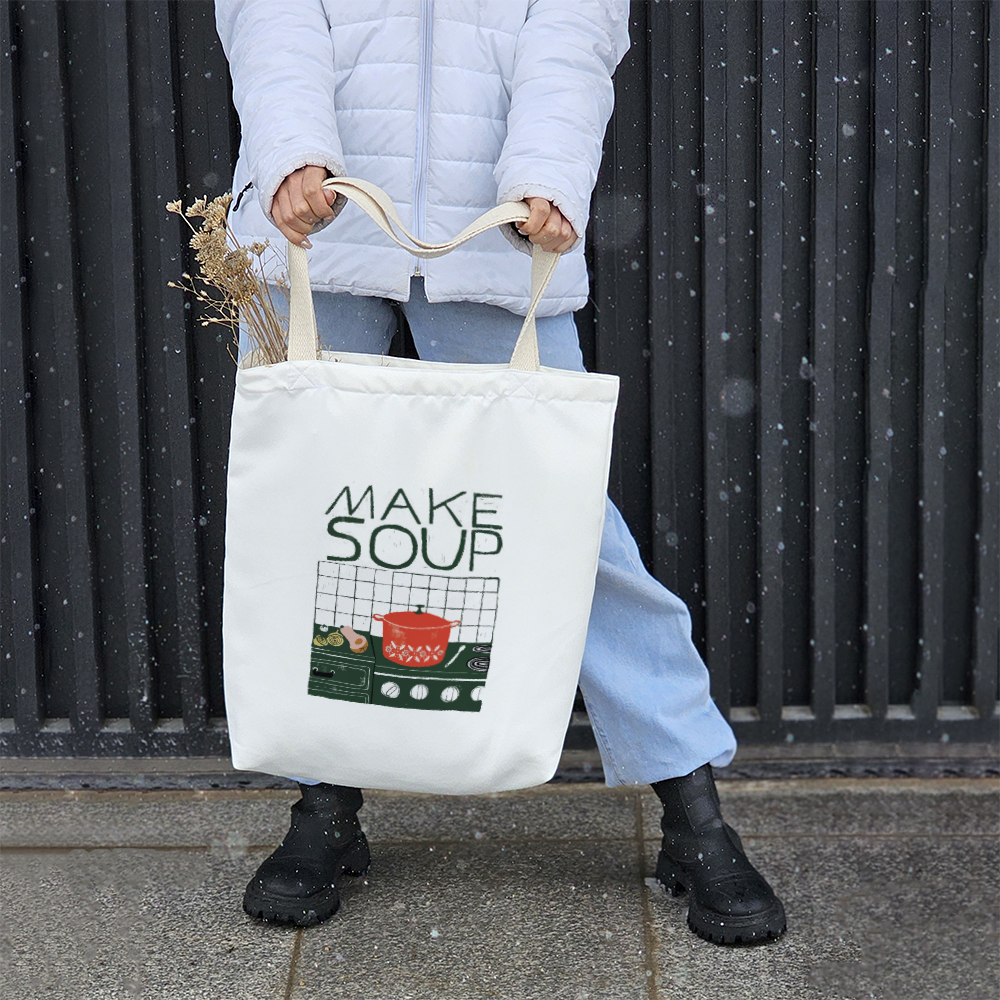 توت‌بگ‌ پارچه‌ای خندالو طرح سوپ خانگی یک انتخاب هوشمندانه، کاربردی و دوستدار محیط‌زیست هستند که می‌توانند جایگزینی مناسب برای کیف‌های چرمی و همچنین جایگزین موثری برای کاهش مصرف کیسه‌های پلاستیکی باشند. این توت‌بگ‌ها از پارچه‌ی هازان با دوام و مقاومت بالا تولید شده‌اند که علاوه بر ظاهر زیبا، کیفیت و استحکام بالایی نیز دارند. یکی از ویژگی‌های مهم این محصول، بندهای نوار پنبه‌ای ۳ سانتی‌متری دوطرفه آن است که به صورت محکم به بدنه متصل شده‌اند. این طراحی باعث می‌شود بتوانید توت‌بگ خود را هم به صورت دستی و هم به شکل دوشی استفاده کنید، بدون اینکه نگران پاره شدن یا آسیب دیدن آن باشید. ابعاد این توت‌بگ ۴۵×۵۰ سانتی‌متر است و طراحی کف پاکتی ۱۱ سانتی‌متری آن کمک می‌کند که فضای بیشتری برای وسایل خود داشته باشید و کیف هنگام حمل، فرم بهتری بگیرد. برای افزایش کارایی، داخل توت‌بگ‌ها آسترکشی شده و یک جیب داخلی کوچک در آن تعبیه شده است که به شما این امکان را می‌دهد وسایل کوچک‌تر مانند گوشی، جاکلیدی یا سایر اقلام ضروری را به صورت جداگانه نگهداری کنید. چاپ روی توت‌بگ‌ سوپ خانگی به‌صورت دیجیتال و باکیفیت بالا انجام شده که باعث دوام و ماندگاری طرح‌ها می‌شود. این محصول کاملاً قابل شستشو است و می‌توانید آن را بدون نگرانی از تغییر رنگ یا آسیب دیدن، هم با ماشین لباسشویی و هم به‌صورت دستی بشویید. یکی دیگر از مزایای توت‌بگ‌ خندالو طرح سوپ خانگی، بسته‌بندی شیک و زیبای آن است که باعث می‌شود این محصول گزینه‌ای ایده‌آل برای هدیه دادن باشد. شما می‌توانید این توت‌بگ‌ها را به عنوان کیف روزمره، ساک خرید یا کیف همراه برای حمل اقلام ضروری خود استفاده کنید و در عین حال به کاهش مصرف پلاستیک و حفظ محیط‌زیست نیز کمک کنید. انتخابی زیبا، کاربردی و پایدار برای سبک زندگی شما!