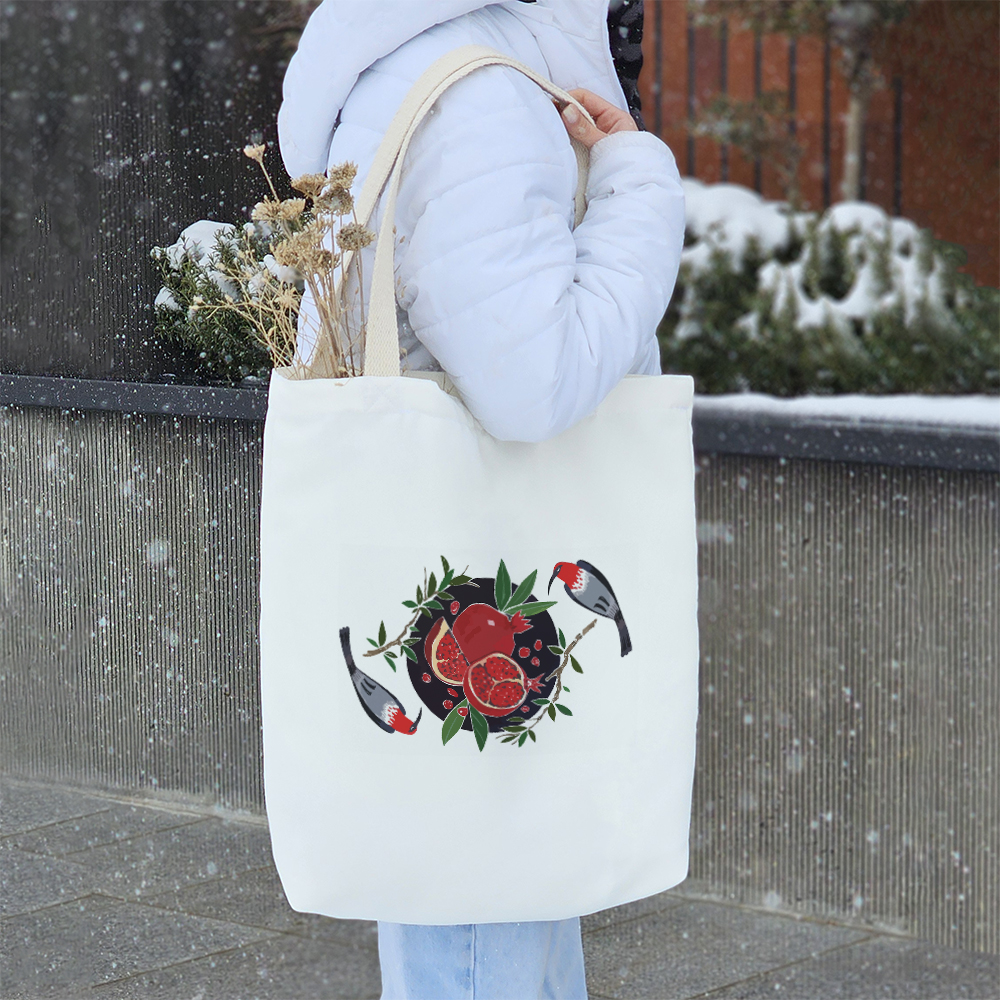توت‌بگ‌ پارچه‌ای خندالو طرح شب یلدا یک انتخاب هوشمندانه، کاربردی و دوستدار محیط‌زیست هستند که می‌توانند جایگزینی مناسب برای کیف‌های چرمی و همچنین جایگزین موثری برای کاهش مصرف کیسه‌های پلاستیکی باشند. این توت‌بگ‌ها از پارچه‌ی هازان با دوام و مقاومت بالا تولید شده‌اند که علاوه بر ظاهر زیبا، کیفیت و استحکام بالایی نیز دارند. یکی از ویژگی‌های مهم این محصول، بندهای نوار پنبه‌ای ۳ سانتی‌متری دوطرفه آن است که به صورت محکم به بدنه متصل شده‌اند. این طراحی باعث می‌شود بتوانید توت‌بگ خود را هم به صورت دستی و هم به شکل دوشی استفاده کنید، بدون اینکه نگران پاره شدن یا آسیب دیدن آن باشید. ابعاد این توت‌بگ ۴۵×۵۰ سانتی‌متر است و طراحی کف پاکتی ۱۱ سانتی‌متری آن کمک می‌کند که فضای بیشتری برای وسایل خود داشته باشید و کیف هنگام حمل، فرم بهتری بگیرد. برای افزایش کارایی، داخل توت‌بگ‌ها آسترکشی شده و یک جیب داخلی کوچک در آن تعبیه شده است که به شما این امکان را می‌دهد وسایل کوچک‌تر مانند گوشی، جاکلیدی یا سایر اقلام ضروری را به صورت جداگانه نگهداری کنید. چاپ روی توت‌بگ‌ شب یلدا به‌صورت دیجیتال و باکیفیت بالا انجام شده که باعث دوام و ماندگاری طرح‌ها می‌شود. این محصول کاملاً قابل شستشو است و می‌توانید آن را بدون نگرانی از تغییر رنگ یا آسیب دیدن، هم با ماشین لباسشویی و هم به‌صورت دستی بشویید. یکی دیگر از مزایای توت‌بگ‌ خندالو طرح شب یلدا، بسته‌بندی شیک و زیبای آن است که باعث می‌شود این محصول گزینه‌ای ایده‌آل برای هدیه دادن باشد. شما می‌توانید این توت‌بگ‌ها را به عنوان کیف روزمره، ساک خرید یا کیف همراه برای حمل اقلام ضروری خود استفاده کنید و در عین حال به کاهش مصرف پلاستیک و حفظ محیط‌زیست نیز کمک کنید. انتخابی زیبا، کاربردی و پایدار برای سبک زندگی شما!