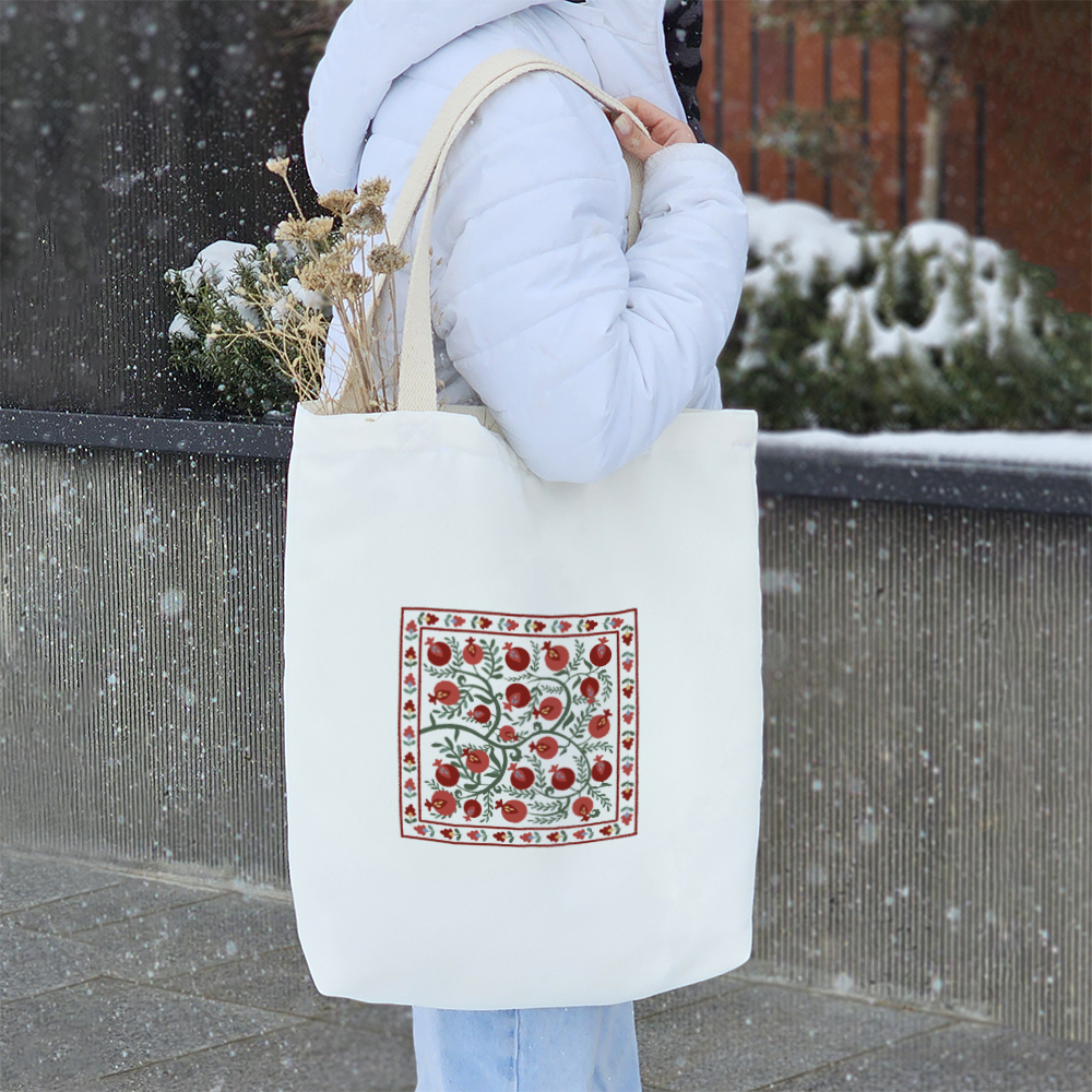 توت‌بگ‌ پارچه‌ای خندالو طرح شب یلدا یک انتخاب هوشمندانه، کاربردی و دوستدار محیط‌زیست هستند که می‌توانند جایگزینی مناسب برای کیف‌های چرمی و همچنین جایگزین موثری برای کاهش مصرف کیسه‌های پلاستیکی باشند. این توت‌بگ‌ها از پارچه‌ی هازان با دوام و مقاومت بالا تولید شده‌اند که علاوه بر ظاهر زیبا، کیفیت و استحکام بالایی نیز دارند. یکی از ویژگی‌های مهم این محصول، بندهای نوار پنبه‌ای ۳ سانتی‌متری دوطرفه آن است که به صورت محکم به بدنه متصل شده‌اند. این طراحی باعث می‌شود بتوانید توت‌بگ خود را هم به صورت دستی و هم به شکل دوشی استفاده کنید، بدون اینکه نگران پاره شدن یا آسیب دیدن آن باشید. ابعاد این توت‌بگ ۴۵×۵۰ سانتی‌متر است و طراحی کف پاکتی ۱۱ سانتی‌متری آن کمک می‌کند که فضای بیشتری برای وسایل خود داشته باشید و کیف هنگام حمل، فرم بهتری بگیرد. برای افزایش کارایی، داخل توت‌بگ‌ها آسترکشی شده و یک جیب داخلی کوچک در آن تعبیه شده است که به شما این امکان را می‌دهد وسایل کوچک‌تر مانند گوشی، جاکلیدی یا سایر اقلام ضروری را به صورت جداگانه نگهداری کنید. چاپ روی توت‌بگ‌ شب یلدا به‌صورت دیجیتال و باکیفیت بالا انجام شده که باعث دوام و ماندگاری طرح‌ها می‌شود. این محصول کاملاً قابل شستشو است و می‌توانید آن را بدون نگرانی از تغییر رنگ یا آسیب دیدن، هم با ماشین لباسشویی و هم به‌صورت دستی بشویید. یکی دیگر از مزایای توت‌بگ‌ خندالو طرح شب یلدا، بسته‌بندی شیک و زیبای آن است که باعث می‌شود این محصول گزینه‌ای ایده‌آل برای هدیه دادن باشد. شما می‌توانید این توت‌بگ‌ها را به عنوان کیف روزمره، ساک خرید یا کیف همراه برای حمل اقلام ضروری خود استفاده کنید و در عین حال به کاهش مصرف پلاستیک و حفظ محیط‌زیست نیز کمک کنید. انتخابی زیبا، کاربردی و پایدار برای سبک زندگی شما!