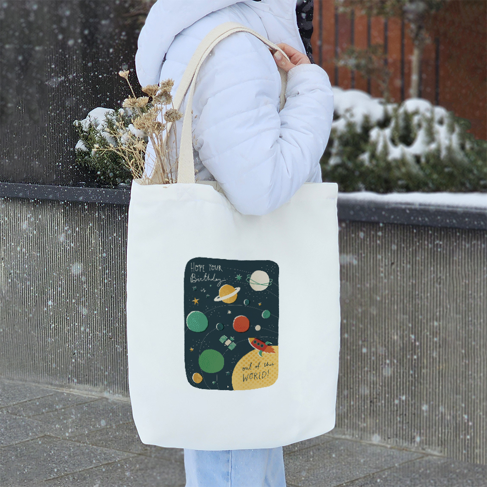 توت‌بگ‌ پارچه‌ای خندالو طرح فضایی یک انتخاب هوشمندانه، کاربردی و دوستدار محیط‌زیست هستند که می‌توانند جایگزینی مناسب برای کیف‌های چرمی و همچنین جایگزین موثری برای کاهش مصرف کیسه‌های پلاستیکی باشند. این توت‌بگ‌ها از پارچه‌ی هازان با دوام و مقاومت بالا تولید شده‌اند که علاوه بر ظاهر زیبا، کیفیت و استحکام بالایی نیز دارند. یکی از ویژگی‌های مهم این محصول، بندهای نوار پنبه‌ای ۳ سانتی‌متری دوطرفه آن است که به صورت محکم به بدنه متصل شده‌اند. این طراحی باعث می‌شود بتوانید توت‌بگ خود را هم به صورت دستی و هم به شکل دوشی استفاده کنید، بدون اینکه نگران پاره شدن یا آسیب دیدن آن باشید. ابعاد این توت‌بگ ۴۵×۵۰ سانتی‌متر است و طراحی کف پاکتی ۱۱ سانتی‌متری آن کمک می‌کند که فضای بیشتری برای وسایل خود داشته باشید و کیف هنگام حمل، فرم بهتری بگیرد. برای افزایش کارایی، داخل توت‌بگ‌ها آسترکشی شده و یک جیب داخلی کوچک در آن تعبیه شده است که به شما این امکان را می‌دهد وسایل کوچک‌تر مانند گوشی، جاکلیدی یا سایر اقلام ضروری را به صورت جداگانه نگهداری کنید. چاپ روی توت‌بگ‌ فضایی به‌صورت دیجیتال و باکیفیت بالا انجام شده که باعث دوام و ماندگاری طرح‌ها می‌شود. این محصول کاملاً قابل شستشو است و می‌توانید آن را بدون نگرانی از تغییر رنگ یا آسیب دیدن، هم با ماشین لباسشویی و هم به‌صورت دستی بشویید. یکی دیگر از مزایای توت‌بگ‌ خندالو طرح فضایی، بسته‌بندی شیک و زیبای آن است که باعث می‌شود این محصول گزینه‌ای ایده‌آل برای هدیه دادن باشد. شما می‌توانید این توت‌بگ‌ها را به عنوان کیف روزمره، ساک خرید یا کیف همراه برای حمل اقلام ضروری خود استفاده کنید و در عین حال به کاهش مصرف پلاستیک و حفظ محیط‌زیست نیز کمک کنید. انتخابی زیبا، کاربردی و پایدار برای سبک زندگی شما!