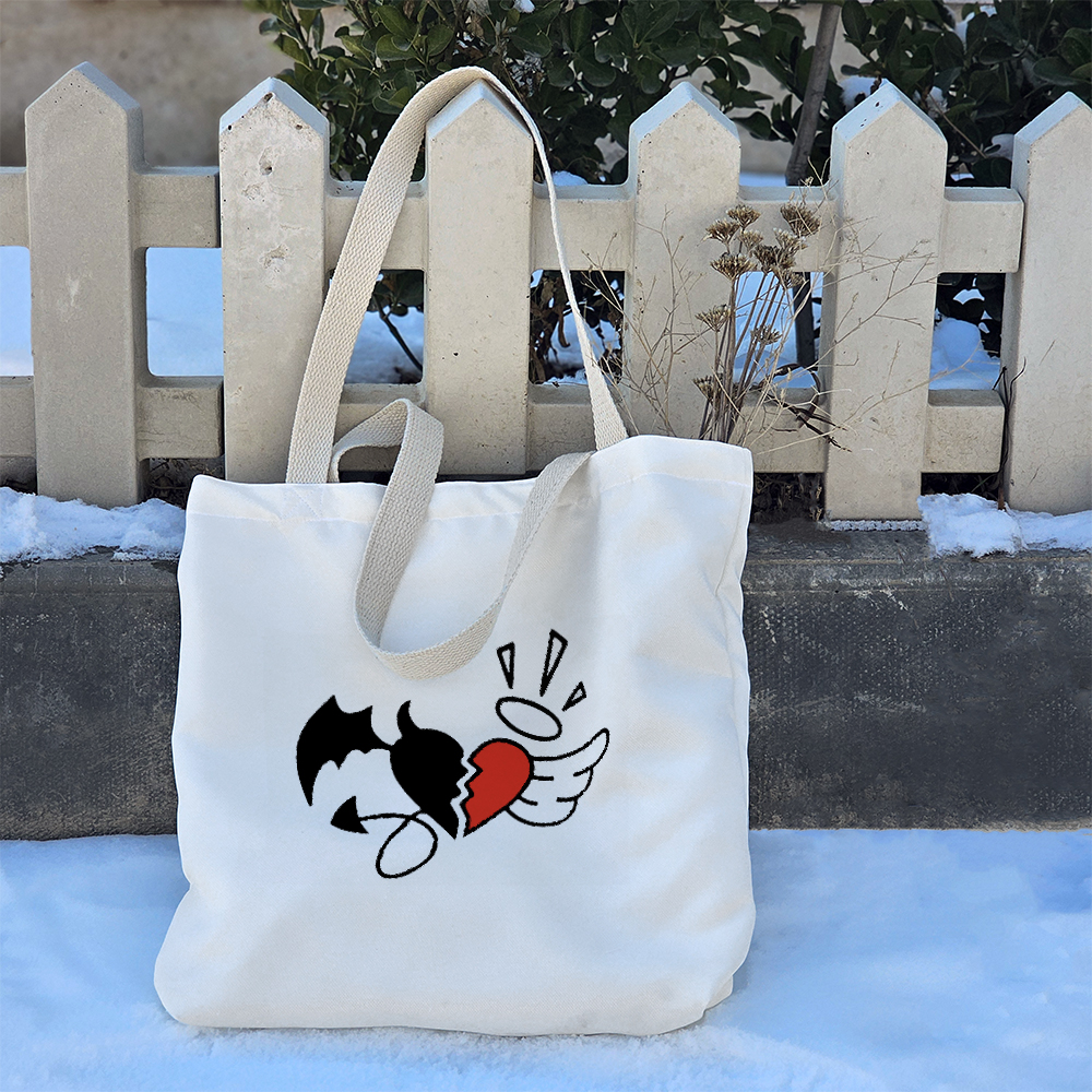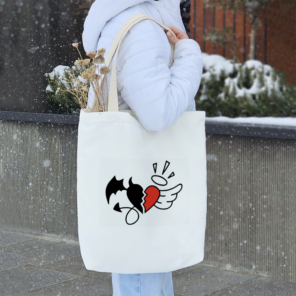 توتبگ پارچهای خندالو طرح قلب فرشته و شیطان یک انتخاب هوشمندانه، کاربردی و دوستدار محیطزیست هستند که میتوانند جایگزینی مناسب برای کیفهای چرمی و همچنین جایگزین موثری برای کاهش مصرف کیسههای پلاستیکی باشند. این توتبگها از پارچهی هازان با دوام و مقاومت بالا تولید شدهاند که علاوه بر ظاهر زیبا، کیفیت و استحکام بالایی نیز دارند. یکی از ویژگیهای مهم این محصول، بندهای نوار پنبهای ۳ سانتیمتری دوطرفه آن است که به صورت محکم به بدنه متصل شدهاند. این طراحی باعث میشود بتوانید توتبگ خود را هم به صورت دستی و هم به شکل دوشی استفاده کنید، بدون اینکه نگران پاره شدن یا آسیب دیدن آن باشید. ابعاد این توتبگ ۴۵×۵۰ سانتیمتر است و طراحی کف پاکتی ۱۱ سانتیمتری آن کمک میکند که فضای بیشتری برای وسایل خود داشته باشید و کیف هنگام حمل، فرم بهتری بگیرد. برای افزایش کارایی، داخل توتبگها آسترکشی شده و یک جیب داخلی کوچک در آن تعبیه شده است که به شما این امکان را میدهد وسایل کوچکتر مانند گوشی، جاکلیدی یا سایر اقلام ضروری را به صورت جداگانه نگهداری کنید. چاپ روی توتبگ قلب فرشته و شیطان بهصورت دیجیتال و باکیفیت بالا انجام شده که باعث دوام و ماندگاری طرحها میشود. این محصول کاملاً قابل شستشو است و میتوانید آن را بدون نگرانی از تغییر رنگ یا آسیب دیدن، هم با ماشین لباسشویی و هم بهصورت دستی بشویید. یکی دیگر از مزایای توتبگ خندالو طرح قلب فرشته و شیطان، بستهبندی شیک و زیبای آن است که باعث میشود این محصول گزینهای ایدهآل برای هدیه دادن باشد. شما میتوانید این توتبگها را به عنوان کیف روزمره، ساک خرید یا کیف همراه برای حمل اقلام ضروری خود استفاده کنید و در عین حال به کاهش مصرف پلاستیک و حفظ محیطزیست نیز کمک کنید. انتخابی زیبا، کاربردی و پایدار برای سبک زندگی شما!