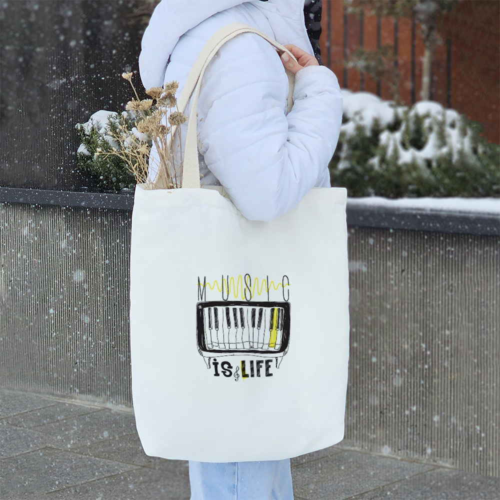 توت‌بگ‌ پارچه‌ای خندالو طرح موزیک یک انتخاب هوشمندانه، کاربردی و دوستدار محیط‌زیست هستند که می‌توانند جایگزینی مناسب برای کیف‌های چرمی و همچنین جایگزین موثری برای کاهش مصرف کیسه‌های پلاستیکی باشند. این توت‌بگ‌ها از پارچه‌ی هازان با دوام و مقاومت بالا تولید شده‌اند که علاوه بر ظاهر زیبا، کیفیت و استحکام بالایی نیز دارند. یکی از ویژگی‌های مهم این محصول، بندهای نوار پنبه‌ای ۳ سانتی‌متری دوطرفه آن است که به صورت محکم به بدنه متصل شده‌اند. این طراحی باعث می‌شود بتوانید توت‌بگ خود را هم به صورت دستی و هم به شکل دوشی استفاده کنید، بدون اینکه نگران پاره شدن یا آسیب دیدن آن باشید. ابعاد این توت‌بگ ۴۵×۵۰ سانتی‌متر است و طراحی کف پاکتی ۱۱ سانتی‌متری آن کمک می‌کند که فضای بیشتری برای وسایل خود داشته باشید و کیف هنگام حمل، فرم بهتری بگیرد. برای افزایش کارایی، داخل توت‌بگ‌ها آسترکشی شده و یک جیب داخلی کوچک در آن تعبیه شده است که به شما این امکان را می‌دهد وسایل کوچک‌تر مانند گوشی، جاکلیدی یا سایر اقلام ضروری را به صورت جداگانه نگهداری کنید. چاپ روی توت‌بگ‌ موزیک به‌صورت دیجیتال و باکیفیت بالا انجام شده که باعث دوام و ماندگاری طرح‌ها می‌شود. این محصول کاملاً قابل شستشو است و می‌توانید آن را بدون نگرانی از تغییر رنگ یا آسیب دیدن، هم با ماشین لباسشویی و هم به‌صورت دستی بشویید. یکی دیگر از مزایای توت‌بگ‌ خندالو طرح موزیک، بسته‌بندی شیک و زیبای آن است که باعث می‌شود این محصول گزینه‌ای ایده‌آل برای هدیه دادن باشد. شما می‌توانید این توت‌بگ‌ها را به عنوان کیف روزمره، ساک خرید یا کیف همراه برای حمل اقلام ضروری خود استفاده کنید و در عین حال به کاهش مصرف پلاستیک و حفظ محیط‌زیست نیز کمک کنید. انتخابی زیبا، کاربردی و پایدار برای سبک زندگی شما!