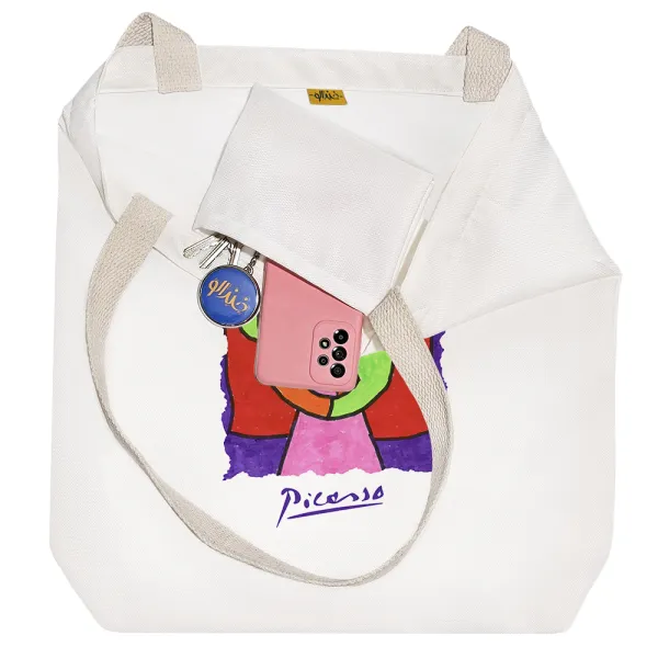 توتبگ پارچهای خندالو طرح نقاشی پیکاسو یک انتخاب هوشمندانه، کاربردی و دوستدار محیطزیست هستند که میتوانند جایگزینی مناسب برای کیفهای چرمی و همچنین جایگزین موثری برای کاهش مصرف کیسههای پلاستیکی باشند. این توتبگها از پارچهی هازان با دوام و مقاومت بالا تولید شدهاند که علاوه بر ظاهر زیبا، کیفیت و استحکام بالایی نیز دارند. یکی از ویژگیهای مهم این محصول، بندهای نوار پنبهای ۳ سانتیمتری دوطرفه آن است که به صورت محکم به بدنه متصل شدهاند. این طراحی باعث میشود بتوانید توتبگ خود را هم به صورت دستی و هم به شکل دوشی استفاده کنید، بدون اینکه نگران پاره شدن یا آسیب دیدن آن باشید. ابعاد این توتبگ ۴۵×۵۰ سانتیمتر است و طراحی کف پاکتی ۱۱ سانتیمتری آن کمک میکند که فضای بیشتری برای وسایل خود داشته باشید و کیف هنگام حمل، فرم بهتری بگیرد. برای افزایش کارایی، داخل توتبگها آسترکشی شده و یک جیب داخلی کوچک در آن تعبیه شده است که به شما این امکان را میدهد وسایل کوچکتر مانند گوشی، جاکلیدی یا سایر اقلام ضروری را به صورت جداگانه نگهداری کنید. چاپ روی توتبگ نقاشی پیکاسو بهصورت دیجیتال و باکیفیت بالا انجام شده که باعث دوام و ماندگاری طرحها میشود. این محصول کاملاً قابل شستشو است و میتوانید آن را بدون نگرانی از تغییر رنگ یا آسیب دیدن، هم با ماشین لباسشویی و هم بهصورت دستی بشویید. یکی دیگر از مزایای توتبگ خندالو طرح نقاشی پیکاسو، بستهبندی شیک و زیبای آن است که باعث میشود این محصول گزینهای ایدهآل برای هدیه دادن باشد. شما میتوانید این توتبگها را به عنوان کیف روزمره، ساک خرید یا کیف همراه برای حمل اقلام ضروری خود استفاده کنید و در عین حال به کاهش مصرف پلاستیک و حفظ محیطزیست نیز کمک کنید. انتخابی زیبا، کاربردی و پایدار برای سبک زندگی شما!