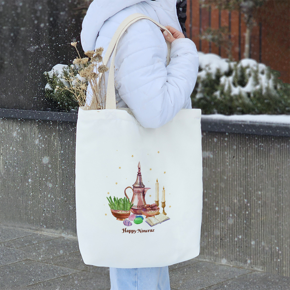 توت‌بگ‌ پارچه‌ای خندالو طرح نوروز مبارک یک انتخاب هوشمندانه، کاربردی و دوستدار محیط‌زیست هستند که می‌توانند جایگزینی مناسب برای کیف‌های چرمی و همچنین جایگزین موثری برای کاهش مصرف کیسه‌های پلاستیکی باشند. این توت‌بگ‌ها از پارچه‌ی هازان با دوام و مقاومت بالا تولید شده‌اند که علاوه بر ظاهر زیبا، کیفیت و استحکام بالایی نیز دارند. یکی از ویژگی‌های مهم این محصول، بندهای نوار پنبه‌ای ۳ سانتی‌متری دوطرفه آن است که به صورت محکم به بدنه متصل شده‌اند. این طراحی باعث می‌شود بتوانید توت‌بگ خود را هم به صورت دستی و هم به شکل دوشی استفاده کنید، بدون اینکه نگران پاره شدن یا آسیب دیدن آن باشید. ابعاد این توت‌بگ ۴۵×۵۰ سانتی‌متر است و طراحی کف پاکتی ۱۱ سانتی‌متری آن کمک می‌کند که فضای بیشتری برای وسایل خود داشته باشید و کیف هنگام حمل، فرم بهتری بگیرد. برای افزایش کارایی، داخل توت‌بگ‌ها آسترکشی شده و یک جیب داخلی کوچک در آن تعبیه شده است که به شما این امکان را می‌دهد وسایل کوچک‌تر مانند گوشی، جاکلیدی یا سایر اقلام ضروری را به صورت جداگانه نگهداری کنید. چاپ روی توت‌بگ‌ نوروز مبارک به‌صورت دیجیتال و باکیفیت بالا انجام شده که باعث دوام و ماندگاری طرح‌ها می‌شود. این محصول کاملاً قابل شستشو است و می‌توانید آن را بدون نگرانی از تغییر رنگ یا آسیب دیدن، هم با ماشین لباسشویی و هم به‌صورت دستی بشویید. یکی دیگر از مزایای توت‌بگ‌ خندالو طرح نوروز مبارک، بسته‌بندی شیک و زیبای آن است که باعث می‌شود این محصول گزینه‌ای ایده‌آل برای هدیه دادن باشد. شما می‌توانید این توت‌بگ‌ها را به عنوان کیف روزمره، ساک خرید یا کیف همراه برای حمل اقلام ضروری خود استفاده کنید و در عین حال به کاهش مصرف پلاستیک و حفظ محیط‌زیست نیز کمک کنید. انتخابی زیبا، کاربردی و پایدار برای سبک زندگی شما!