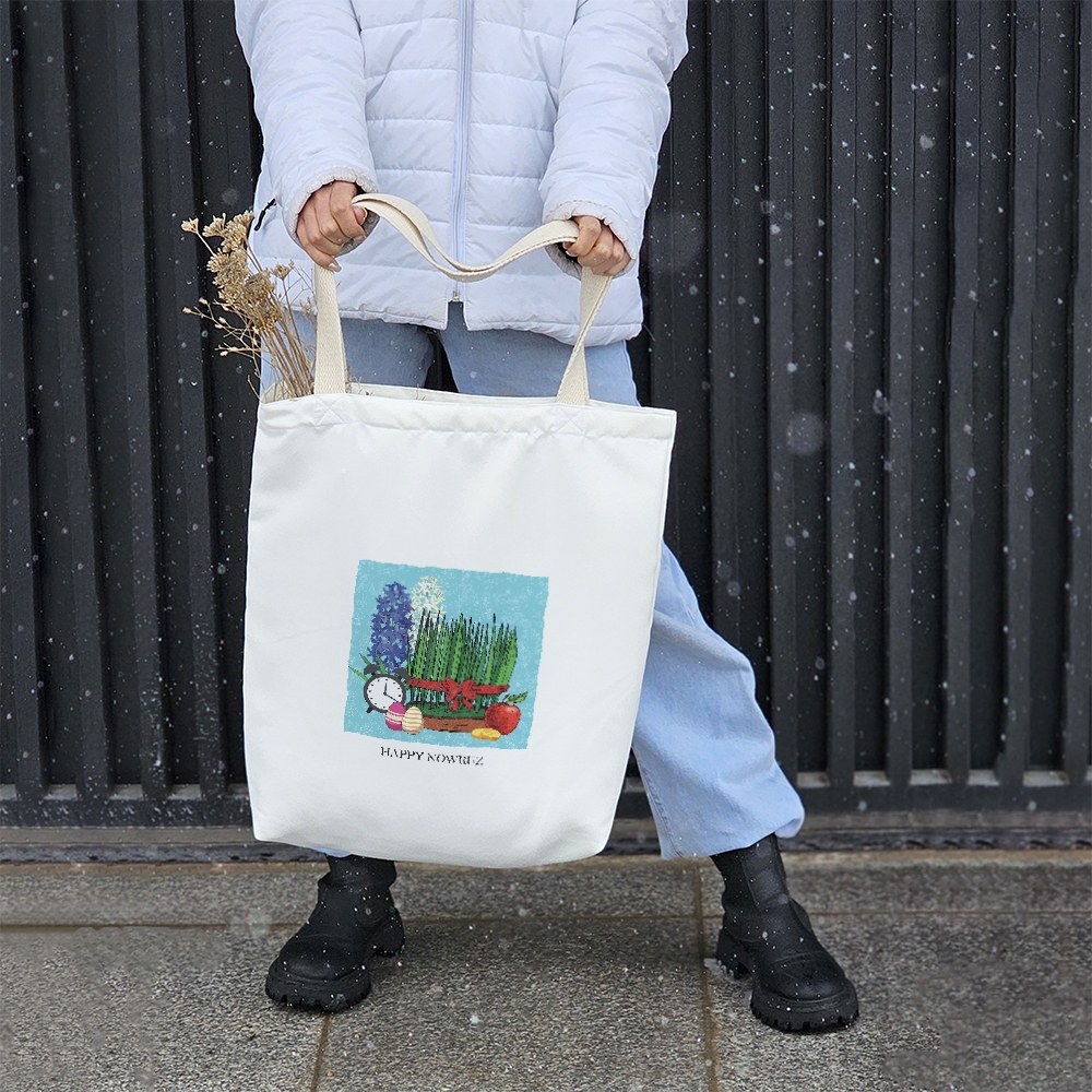 توت‌بگ‌ پارچه‌ای خندالو طرح نوروز مبارک یک انتخاب هوشمندانه، کاربردی و دوستدار محیط‌زیست هستند که می‌توانند جایگزینی مناسب برای کیف‌های چرمی و همچنین جایگزین موثری برای کاهش مصرف کیسه‌های پلاستیکی باشند. این توت‌بگ‌ها از پارچه‌ی هازان با دوام و مقاومت بالا تولید شده‌اند که علاوه بر ظاهر زیبا، کیفیت و استحکام بالایی نیز دارند. یکی از ویژگی‌های مهم این محصول، بندهای نوار پنبه‌ای ۳ سانتی‌متری دوطرفه آن است که به صورت محکم به بدنه متصل شده‌اند. این طراحی باعث می‌شود بتوانید توت‌بگ خود را هم به صورت دستی و هم به شکل دوشی استفاده کنید، بدون اینکه نگران پاره شدن یا آسیب دیدن آن باشید. ابعاد این توت‌بگ ۴۵×۵۰ سانتی‌متر است و طراحی کف پاکتی ۱۱ سانتی‌متری آن کمک می‌کند که فضای بیشتری برای وسایل خود داشته باشید و کیف هنگام حمل، فرم بهتری بگیرد. برای افزایش کارایی، داخل توت‌بگ‌ها آسترکشی شده و یک جیب داخلی کوچک در آن تعبیه شده است که به شما این امکان را می‌دهد وسایل کوچک‌تر مانند گوشی، جاکلیدی یا سایر اقلام ضروری را به صورت جداگانه نگهداری کنید. چاپ روی توت‌بگ‌ نوروز مبارک به‌صورت دیجیتال و باکیفیت بالا انجام شده که باعث دوام و ماندگاری طرح‌ها می‌شود. این محصول کاملاً قابل شستشو است و می‌توانید آن را بدون نگرانی از تغییر رنگ یا آسیب دیدن، هم با ماشین لباسشویی و هم به‌صورت دستی بشویید. یکی دیگر از مزایای توت‌بگ‌ خندالو طرح نوروز مبارک، بسته‌بندی شیک و زیبای آن است که باعث می‌شود این محصول گزینه‌ای ایده‌آل برای هدیه دادن باشد. شما می‌توانید این توت‌بگ‌ها را به عنوان کیف روزمره، ساک خرید یا کیف همراه برای حمل اقلام ضروری خود استفاده کنید و در عین حال به کاهش مصرف پلاستیک و حفظ محیط‌زیست نیز کمک کنید. انتخابی زیبا، کاربردی و پایدار برای سبک زندگی شما!