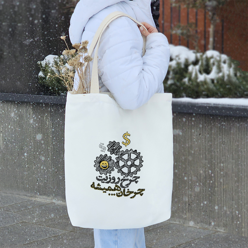 توت‌بگ‌ پارچه‌ای خندالو طرح چرخ روزیت چرخان همیشه یک انتخاب هوشمندانه، کاربردی و دوستدار محیط‌زیست هستند که می‌توانند جایگزینی مناسب برای کیف‌های چرمی و همچنین جایگزین موثری برای کاهش مصرف کیسه‌های پلاستیکی باشند. این توت‌بگ‌ها از پارچه‌ی هازان با دوام و مقاومت بالا تولید شده‌اند که علاوه بر ظاهر زیبا، کیفیت و استحکام بالایی نیز دارند. یکی از ویژگی‌های مهم این محصول، بندهای نوار پنبه‌ای ۳ سانتی‌متری دوطرفه آن است که به صورت محکم به بدنه متصل شده‌اند. این طراحی باعث می‌شود بتوانید توت‌بگ خود را هم به صورت دستی و هم به شکل دوشی استفاده کنید، بدون اینکه نگران پاره شدن یا آسیب دیدن آن باشید. ابعاد این توت‌بگ ۴۵×۵۰ سانتی‌متر است و طراحی کف پاکتی ۱۱ سانتی‌متری آن کمک می‌کند که فضای بیشتری برای وسایل خود داشته باشید و کیف هنگام حمل، فرم بهتری بگیرد. برای افزایش کارایی، داخل توت‌بگ‌ها آسترکشی شده و یک جیب داخلی کوچک در آن تعبیه شده است که به شما این امکان را می‌دهد وسایل کوچک‌تر مانند گوشی، جاکلیدی یا سایر اقلام ضروری را به صورت جداگانه نگهداری کنید. چاپ روی توت‌بگ‌ چرخ روزیت چرخان همیشه به‌صورت دیجیتال و باکیفیت بالا انجام شده که باعث دوام و ماندگاری طرح‌ها می‌شود. این محصول کاملاً قابل شستشو است و می‌توانید آن را بدون نگرانی از تغییر رنگ یا آسیب دیدن، هم با ماشین لباسشویی و هم به‌صورت دستی بشویید. یکی دیگر از مزایای توت‌بگ‌ خندالو طرح چرخ روزیت چرخان همیشه، بسته‌بندی شیک و زیبای آن است که باعث می‌شود این محصول گزینه‌ای ایده‌آل برای هدیه دادن باشد. شما می‌توانید این توت‌بگ‌ها را به عنوان کیف روزمره، ساک خرید یا کیف همراه برای حمل اقلام ضروری خود استفاده کنید و در عین حال به کاهش مصرف پلاستیک و حفظ محیط‌زیست نیز کمک کنید. انتخابی زیبا، کاربردی و پایدار برای سبک زندگی شما!