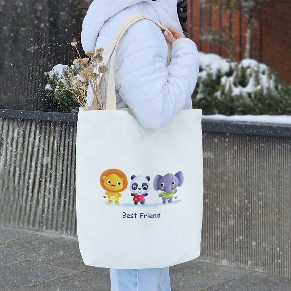 توتبگ پارچهای خندالو طرح Best friends یک انتخاب هوشمندانه، کاربردی و دوستدار محیطزیست هستند که میتوانند جایگزینی مناسب برای کیفهای چرمی و همچنین جایگزین موثری برای کاهش مصرف کیسههای پلاستیکی باشند. این توتبگها از پارچهی هازان با دوام و مقاومت بالا تولید شدهاند که علاوه بر ظاهر زیبا، کیفیت و استحکام بالایی نیز دارند. یکی از ویژگیهای مهم این محصول، بندهای نوار پنبهای ۳ سانتیمتری دوطرفه آن است که به صورت محکم به بدنه متصل شدهاند. این طراحی باعث میشود بتوانید توتبگ خود را هم به صورت دستی و هم به شکل دوشی استفاده کنید، بدون اینکه نگران پاره شدن یا آسیب دیدن آن باشید. ابعاد این توتبگ ۴۵×۵۰ سانتیمتر است و طراحی کف پاکتی ۱۱ سانتیمتری آن کمک میکند که فضای بیشتری برای وسایل خود داشته باشید و کیف هنگام حمل، فرم بهتری بگیرد. برای افزایش کارایی، داخل توتبگها آسترکشی شده و یک جیب داخلی کوچک در آن تعبیه شده است که به شما این امکان را میدهد وسایل کوچکتر مانند گوشی، جاکلیدی یا سایر اقلام ضروری را به صورت جداگانه نگهداری کنید. چاپ روی توتبگ Best friends بهصورت دیجیتال و باکیفیت بالا انجام شده که باعث دوام و ماندگاری طرحها میشود. این محصول کاملاً قابل شستشو است و میتوانید آن را بدون نگرانی از تغییر رنگ یا آسیب دیدن، هم با ماشین لباسشویی و هم بهصورت دستی بشویید. یکی دیگر از مزایای توتبگ خندالو طرح Best friends، بستهبندی شیک و زیبای آن است که باعث میشود این محصول گزینهای ایدهآل برای هدیه دادن باشد. شما میتوانید این توتبگها را به عنوان کیف روزمره، ساک خرید یا کیف همراه برای حمل اقلام ضروری خود استفاده کنید و در عین حال به کاهش مصرف پلاستیک و حفظ محیطزیست نیز کمک کنید. انتخابی زیبا، کاربردی و پایدار برای سبک زندگی شما!