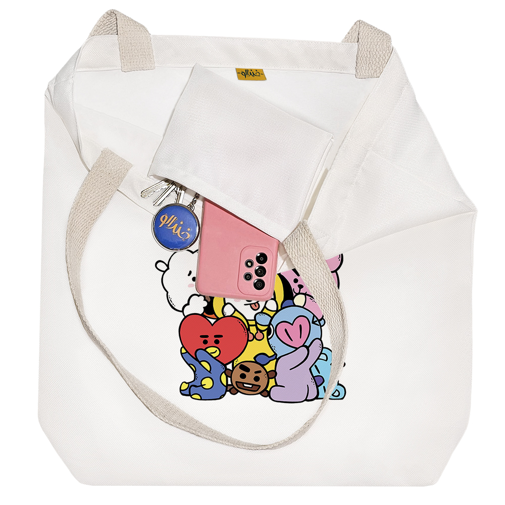 توت‌بگ‌ پارچه‌ای خندالو طرح BT21 یک انتخاب هوشمندانه، کاربردی و دوستدار محیط‌زیست هستند که می‌توانند جایگزینی مناسب برای کیف‌های چرمی و همچنین جایگزین موثری برای کاهش مصرف کیسه‌های پلاستیکی باشند. این توت‌بگ‌ها از پارچه‌ی هازان با دوام و مقاومت بالا تولید شده‌اند که علاوه بر ظاهر زیبا، کیفیت و استحکام بالایی نیز دارند. یکی از ویژگی‌های مهم این محصول، بندهای نوار پنبه‌ای ۳ سانتی‌متری دوطرفه آن است که به صورت محکم به بدنه متصل شده‌اند. این طراحی باعث می‌شود بتوانید توت‌بگ خود را هم به صورت دستی و هم به شکل دوشی استفاده کنید، بدون اینکه نگران پاره شدن یا آسیب دیدن آن باشید. ابعاد این توت‌بگ ۴۵×۵۰ سانتی‌متر است و طراحی کف پاکتی ۱۱ سانتی‌متری آن کمک می‌کند که فضای بیشتری برای وسایل خود داشته باشید و کیف هنگام حمل، فرم بهتری بگیرد. برای افزایش کارایی، داخل توت‌بگ‌ها آسترکشی شده و یک جیب داخلی کوچک در آن تعبیه شده است که به شما این امکان را می‌دهد وسایل کوچک‌تر مانند گوشی، جاکلیدی یا سایر اقلام ضروری را به صورت جداگانه نگهداری کنید. چاپ روی توت‌بگ‌ BT21 به‌صورت دیجیتال و باکیفیت بالا انجام شده که باعث دوام و ماندگاری طرح‌ها می‌شود. این محصول کاملاً قابل شستشو است و می‌توانید آن را بدون نگرانی از تغییر رنگ یا آسیب دیدن، هم با ماشین لباسشویی و هم به‌صورت دستی بشویید. یکی دیگر از مزایای توت‌بگ‌ خندالو طرح BT21، بسته‌بندی شیک و زیبای آن است که باعث می‌شود این محصول گزینه‌ای ایده‌آل برای هدیه دادن باشد. شما می‌توانید این توت‌بگ‌ها را به عنوان کیف روزمره، ساک خرید یا کیف همراه برای حمل اقلام ضروری خود استفاده کنید و در عین حال به کاهش مصرف پلاستیک و حفظ محیط‌زیست نیز کمک کنید. انتخابی زیبا، کاربردی و پایدار برای سبک زندگی شما!