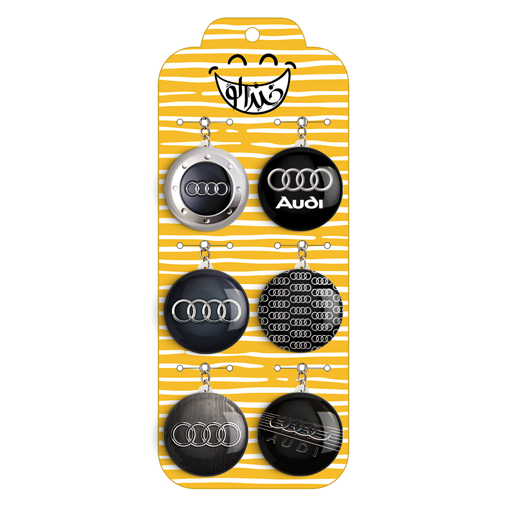 پک 6 عددی جاکلیدی خندالو طرح آئودی (Audi) با استفاده از روکش سلفون حرارتی مات ضدخش تولید شده که خاصیت ضدخش بودن آن عمر مفید استفاده از جاکلیدی ها را افزایش میدهد. چاپ جاکلیدی ها با دستگاه های استاندارد و با بهترین سطح کیفیت صورت گرفته و طرح با شفافیتی مثال زدنی و با سلفون چسبی تولید شده است که باعث شده محصول نهایی بدون شکست نور دیده شود. همچنین بسته بندی جذاب و مینیمال جاکلیدی ها، آنها را محصولی مناسب هدیه کرده است. زنجیر و حلقه بکار برده شده در جاکلیدی خندالو از نوع حلقه درجه یک و ضخیم و محکم بوده و حین استفاده آسیب نمی بیند. قطعی پشتی جاکلیدی از جنس ABS شفاف سفید رنگ تولید شده که در مقابل خط و خش مقاوم بوده و به هیچ عنوان دچار شکستگی نخواهد شد.