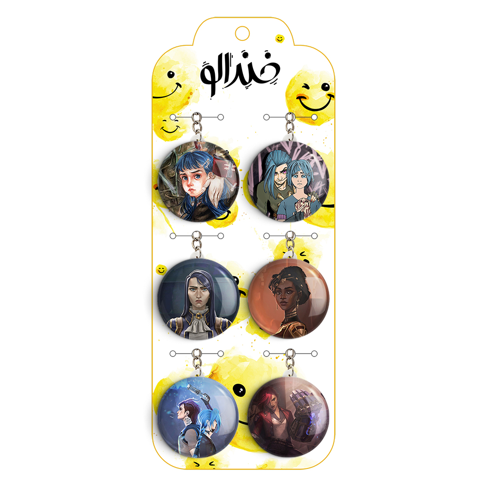 پک 6 عددی جاکلیدی خندالو طرح آرکین (Arcane) با استفاده از روکش سلفون حرارتی مات ضدخش تولید شده که خاصیت ضدخش بودن آن عمر مفید استفاده از جاکلیدی ها را افزایش میدهد. چاپ جاکلیدی ها با دستگاه های استاندارد و با بهترین سطح کیفیت صورت گرفته و طرح با شفافیتی مثال زدنی و با سلفون چسبی تولید شده است که باعث شده محصول نهایی بدون شکست نور دیده شود. همچنین بسته بندی جذاب و مینیمال جاکلیدی ها، آنها را محصولی مناسب هدیه کرده است. زنجیر و حلقه بکار برده شده در جاکلیدی خندالو از نوع حلقه درجه یک و ضخیم و محکم بوده و حین استفاده آسیب نمی بیند. قطعی پشتی جاکلیدی از جنس ABS شفاف سفید رنگ تولید شده که در مقابل خط و خش مقاوم بوده و به هیچ عنوان دچار شکستگی نخواهد شد.