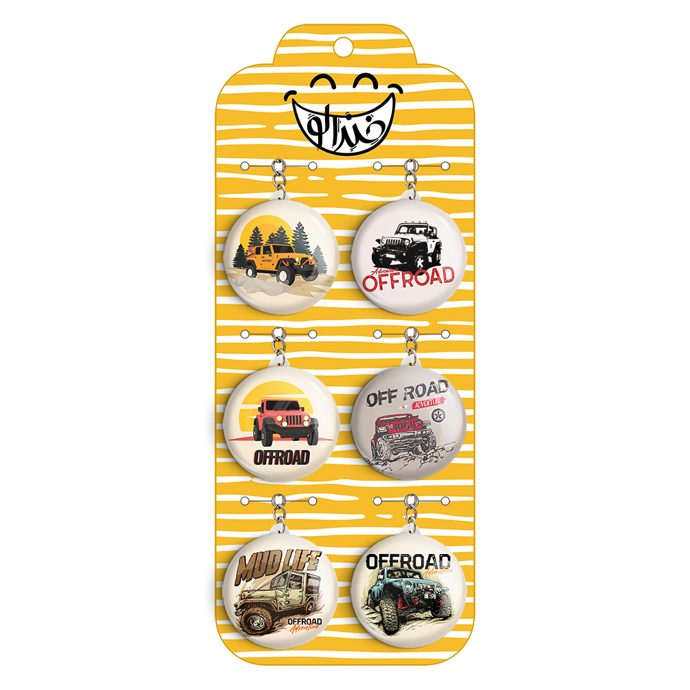 پک 6 عددی جاکلیدی خندالو طرح آفرود (Off Road) با استفاده از روکش سلفون حرارتی مات ضدخش تولید شده که خاصیت ضدخش بودن آن عمر مفید استفاده از جاکلیدی ها را افزایش میدهد. چاپ جاکلیدی ها با دستگاه های استاندارد و با بهترین سطح کیفیت صورت گرفته و طرح با شفافیتی مثال زدنی و با سلفون چسبی تولید شده است که باعث شده محصول نهایی بدون شکست نور دیده شود.