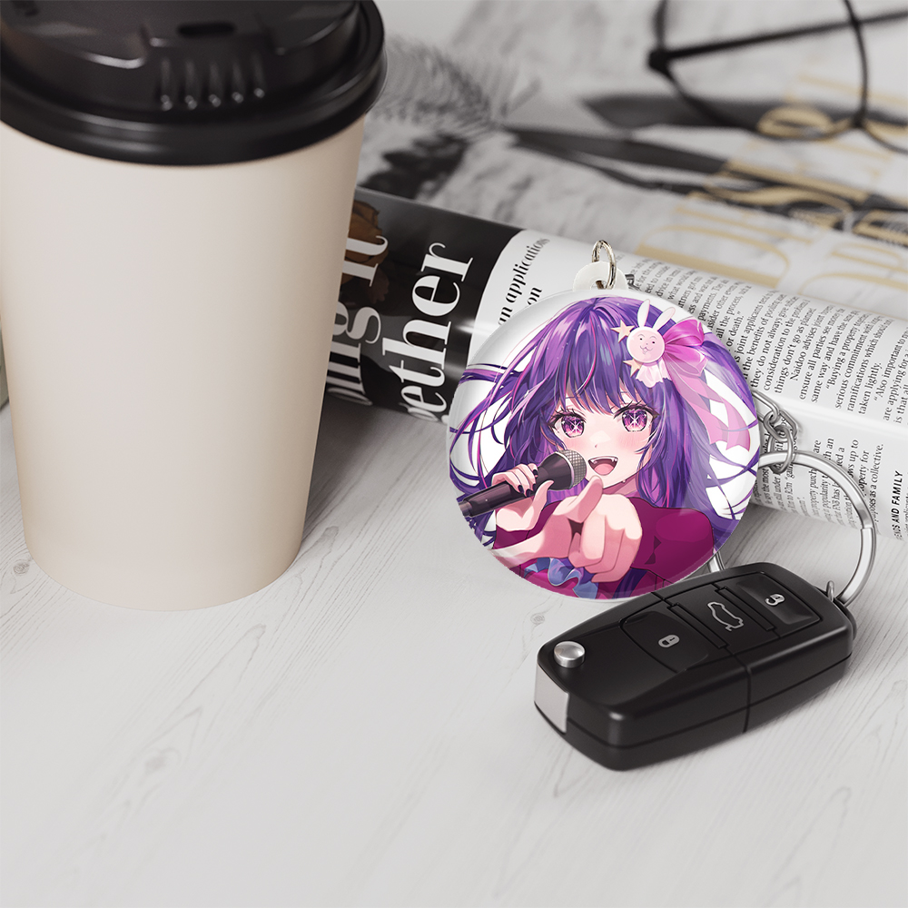 جاکلیدی آی انیمه اوشی نو کو صرفا برای آویز کلید نیست و میتوان آن را به عنوان آویز زینتی از زیپ کیف، آیینه جلوی خودرو، درب کمد دیواری اتاق ها و… آویزان کرد.