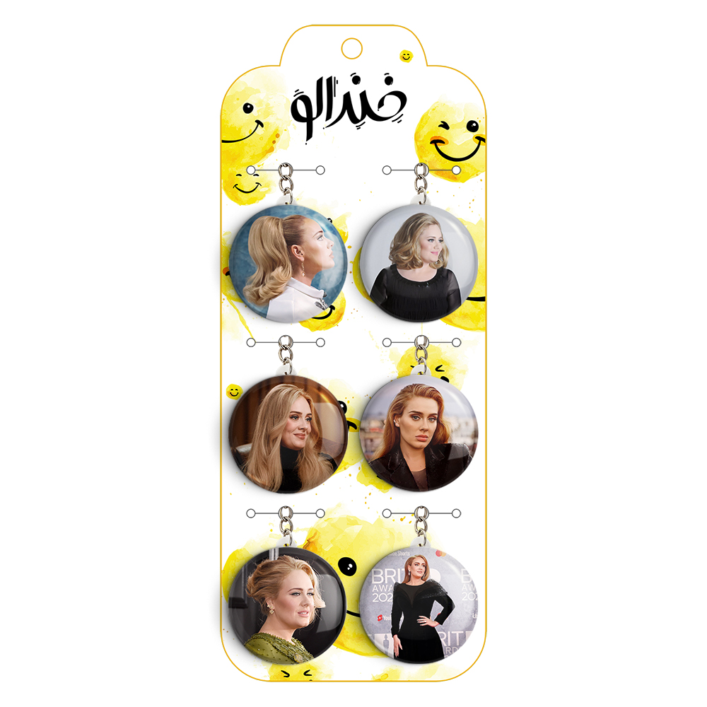 پک 6 عددی جاکلیدی خندالو طرح ادل (Adele) با استفاده از روکش سلفون حرارتی مات ضدخش تولید شده که خاصیت ضدخش بودن آن عمر مفید استفاده از جاکلیدی ها را افزایش میدهد. چاپ جاکلیدی ها با دستگاه های استاندارد و با بهترین سطح کیفیت صورت گرفته و طرح با شفافیتی مثال زدنی و با سلفون چسبی تولید شده است که باعث شده محصول نهایی بدون شکست نور دیده شود.