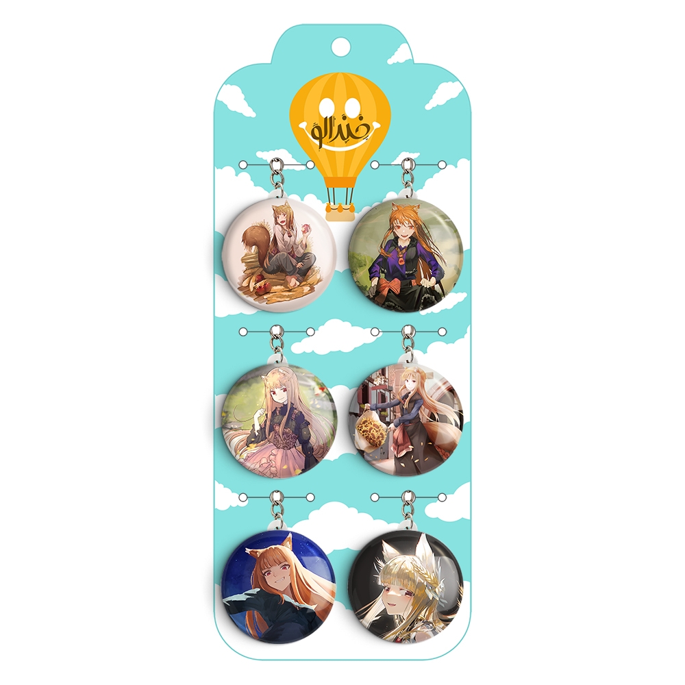 پک 6 عددی جاکلیدی خندالو طرح ادویه و گرگ (Spice and Wolf) با استفاده از روکش سلفون حرارتی مات ضدخش تولید شده که خاصیت ضدخش بودن آن عمر مفید استفاده از جاکلیدی ها را افزایش میدهد. چاپ جاکلیدی ها با دستگاه های استاندارد و با بهترین سطح کیفیت صورت گرفته و طرح با شفافیتی مثال زدنی و با سلفون چسبی تولید شده است که باعث شده محصول نهایی بدون شکست نور دیده شود.