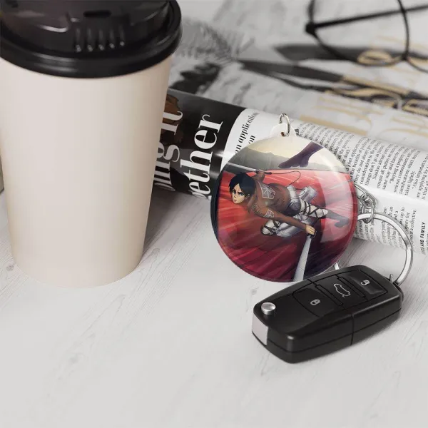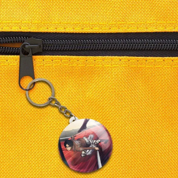 خندالو جاکلیدی ارن یگر انیمه اتک آن تایتان Attack on Titan را با استفاده از روکش سلفون حرارتی مات مخملی ضدخش تولید می کند که خاصیت ضدخش بودن آن، کمک میکند تا عمر مفید استفاده از جاکلیدی ها افزایش پیدا کند و با یک خراش ساده مثل برخورد سطح ناخن با محصول، دچار و خط و خش نشود.
