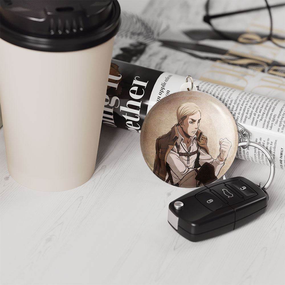 خندالو جاکلیدی اروین اسمیت انیمه اتک آن تایتان Attack on Titan را با استفاده از روکش سلفون حرارتی مات مخملی ضدخش تولید می کند که خاصیت ضدخش بودن آن، کمک میکند تا عمر مفید استفاده از جاکلیدی ها افزایش پیدا کند و با یک خراش ساده مثل برخورد سطح ناخن با محصول، دچار و خط و خش نشود.