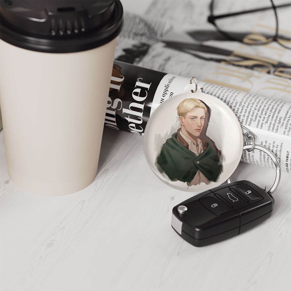 خندالو جاکلیدی اروین اسمیث انیمه اتک آن تایتان Attack on Titan را با استفاده از روکش سلفون حرارتی مات مخملی ضدخش تولید می کند که خاصیت ضدخش بودن آن، کمک میکند تا عمر مفید استفاده از جاکلیدی ها افزایش پیدا کند و با یک خراش ساده مثل برخورد سطح ناخن با محصول، دچار و خط و خش نشود.