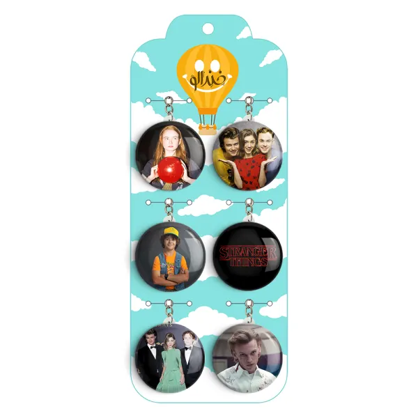 پک 6 عددی جاکلیدی خندالو طرح استرنجر تینگز (Stranger Things) با استفاده از روکش سلفون حرارتی مات ضدخش تولید شده که خاصیت ضدخش بودن آن عمر مفید استفاده از جاکلیدی ها را افزایش میدهد. چاپ جاکلیدی ها با دستگاه های استاندارد و با بهترین سطح کیفیت صورت گرفته و طرح با شفافیتی مثال زدنی و با سلفون چسبی تولید شده است که باعث شده محصول نهایی بدون شکست نور دیده شود.