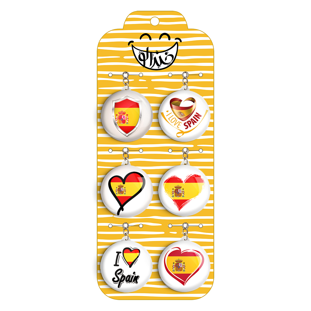 پک 6 عددی جاکلیدی خندالو طرح اسپانیا (Spain) با استفاده از روکش سلفون حرارتی مات ضدخش تولید شده که خاصیت ضدخش بودن آن عمر مفید استفاده از جاکلیدی ها را افزایش میدهد. چاپ جاکلیدی ها با دستگاه های استاندارد و با بهترین سطح کیفیت صورت گرفته و طرح با شفافیتی مثال زدنی و با سلفون چسبی تولید شده است که باعث شده محصول نهایی بدون شکست نور دیده شود. همچنین بسته بندی جذاب و مینیمال جاکلیدی ها، آنها را محصولی مناسب هدیه کرده است. زنجیر و حلقه بکار برده شده در جاکلیدی خندالو از نوع حلقه درجه یک و ضخیم و محکم بوده و حین استفاده آسیب نمی بیند. قطعی پشتی جاکلیدی از جنس ABS شفاف سفید رنگ تولید شده که در مقابل خط و خش مقاوم بوده و به هیچ عنوان دچار شکستگی نخواهد شد.