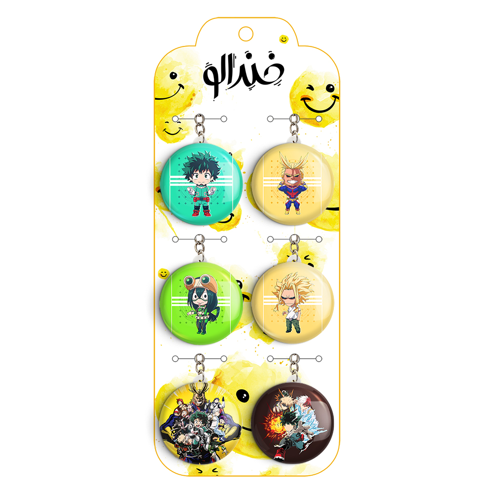 پک 6 عددی جاکلیدی خندالو طرح انیمه آکادمی قهرمانان من با استفاده از روکش سلفون حرارتی مات ضدخش تولید شده که خاصیت ضدخش بودن آن عمر مفید استفاده از جاکلیدی ها را افزایش میدهد. چاپ جاکلیدی ها با دستگاه های استاندارد و با بهترین سطح کیفیت صورت گرفته و طرح با شفافیتی مثال زدنی و با سلفون چسبی تولید شده است که باعث شده محصول نهایی بدون شکست نور دیده شود. همچنین بسته بندی جذاب و مینیمال جاکلیدی ها، آنها را محصولی مناسب هدیه کرده است. زنجیر و حلقه بکار برده شده در جاکلیدی خندالو از نوع حلقه درجه یک و ضخیم و محکم بوده و حین استفاده آسیب نمی بیند. قطعی پشتی جاکلیدی از جنس ABS شفاف سفید رنگ تولید شده که در مقابل خط و خش مقاوم بوده و به هیچ عنوان دچار شکستگی نخواهد شد.
