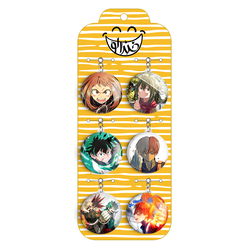 پک 6 عددی جاکلیدی خندالو طرح انیمه آکادمی قهرمانان من با استفاده از روکش سلفون حرارتی مات ضدخش تولید شده که خاصیت ضدخش بودن آن عمر مفید استفاده از جاکلیدی ها را افزایش میدهد. چاپ جاکلیدی ها با دستگاه های استاندارد و با بهترین سطح کیفیت صورت گرفته و طرح با شفافیتی مثال زدنی و با سلفون چسبی تولید شده است که باعث شده محصول نهایی بدون شکست نور دیده شود. همچنین بسته بندی جذاب و مینیمال جاکلیدی ها، آنها را محصولی مناسب هدیه کرده است. زنجیر و حلقه بکار برده شده در جاکلیدی خندالو از نوع حلقه درجه یک و ضخیم و محکم بوده و حین استفاده آسیب نمی بیند. قطعی پشتی جاکلیدی از جنس ABS شفاف سفید رنگ تولید شده که در مقابل خط و خش مقاوم بوده و به هیچ عنوان دچار شکستگی نخواهد شد.