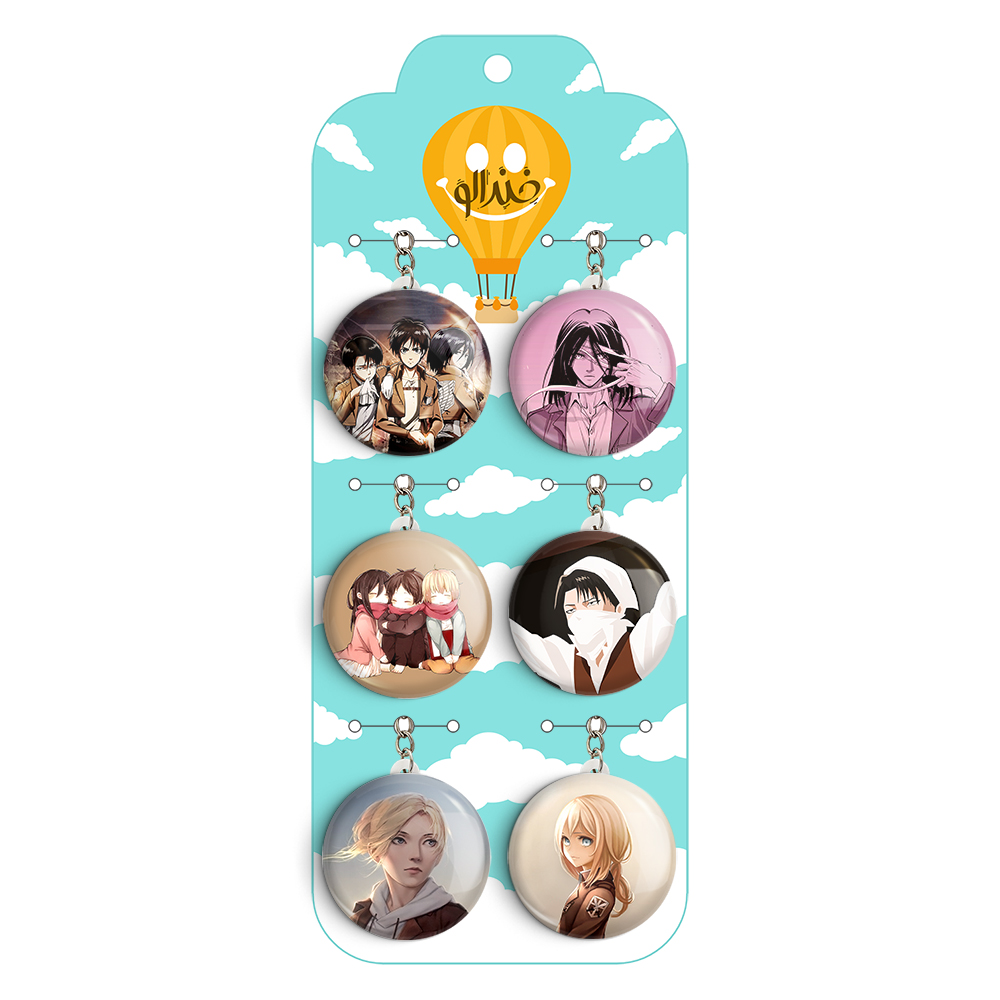 پک 6 عددی جاکلیدی خندالو طرح انیمه اتک آن تایتان (Attack on Titan) با استفاده از روکش سلفون حرارتی مات ضدخش تولید شده که خاصیت ضدخش بودن آن عمر مفید استفاده از جاکلیدی ها را افزایش میدهد. چاپ جاکلیدی ها با دستگاه های استاندارد و با بهترین سطح کیفیت صورت گرفته و طرح با شفافیتی مثال زدنی و با سلفون چسبی تولید شده است که باعث شده محصول نهایی بدون شکست نور دیده شود.