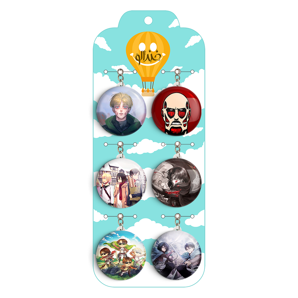 پک 6 عددی جاکلیدی خندالو طرح انیمه اتک آن تایتان (Attack on Titan) با استفاده از روکش سلفون حرارتی مات ضدخش تولید شده که خاصیت ضدخش بودن آن عمر مفید استفاده از جاکلیدی ها را افزایش میدهد. چاپ جاکلیدی ها با دستگاه های استاندارد و با بهترین سطح کیفیت صورت گرفته و طرح با شفافیتی مثال زدنی و با سلفون چسبی تولید شده است که باعث شده محصول نهایی بدون شکست نور دیده شود.
