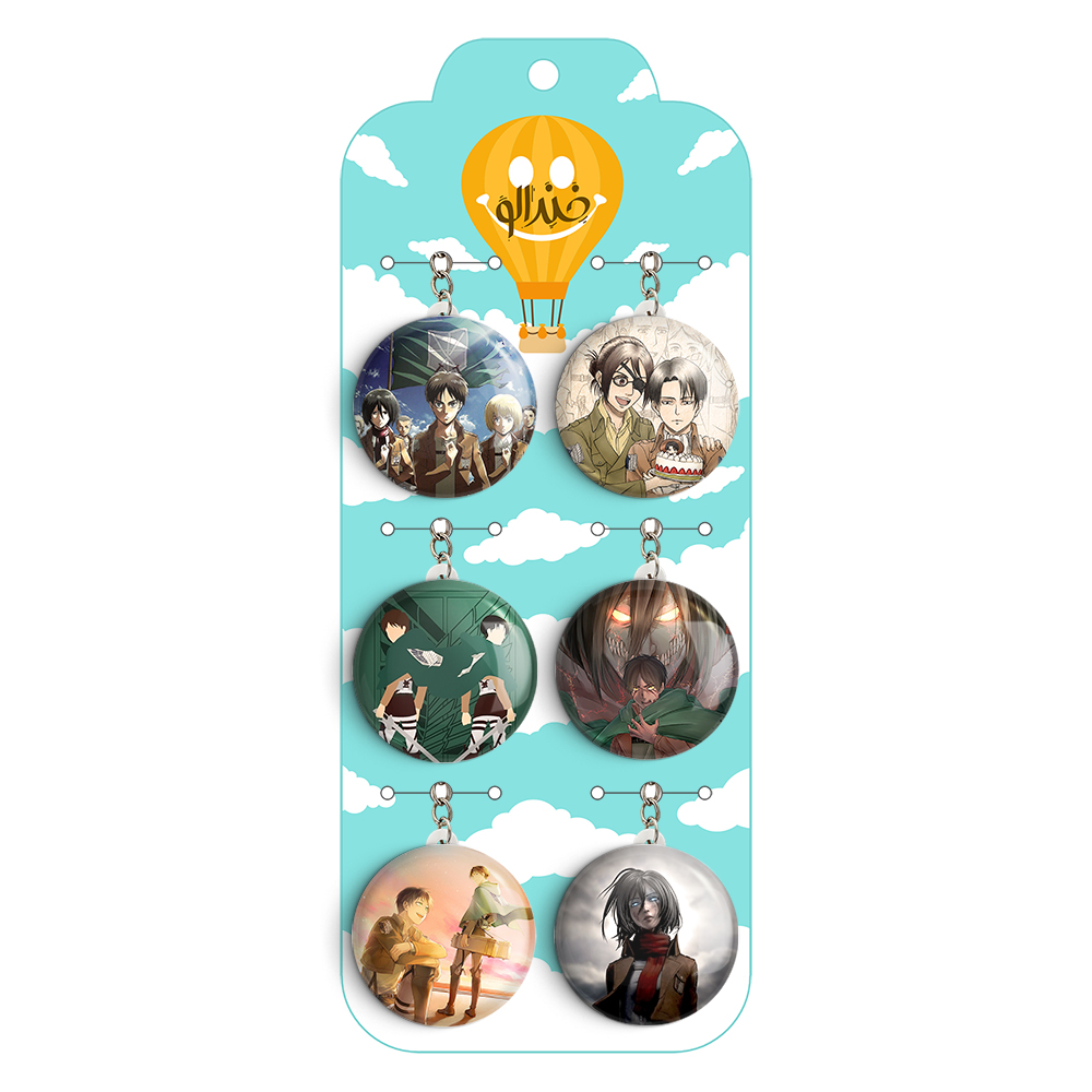 پک 6 عددی جاکلیدی خندالو طرح انیمه اتک آن تایتان (Attack on Titan) با استفاده از روکش سلفون حرارتی مات ضدخش تولید شده که خاصیت ضدخش بودن آن عمر مفید استفاده از جاکلیدی ها را افزایش میدهد. چاپ جاکلیدی ها با دستگاه های استاندارد و با بهترین سطح کیفیت صورت گرفته و طرح با شفافیتی مثال زدنی و با سلفون چسبی تولید شده است که باعث شده محصول نهایی بدون شکست نور دیده شود.