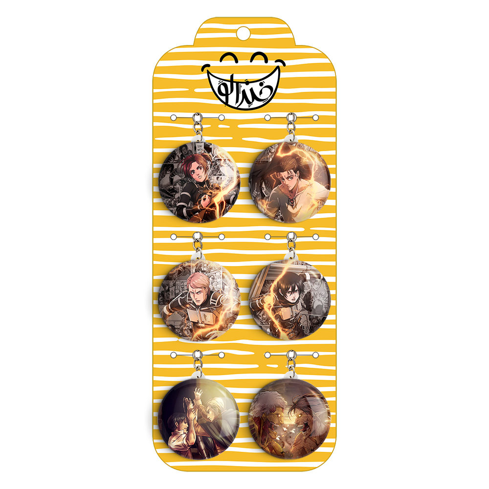 پک 6 عددی جاکلیدی خندالو طرح انیمه اتک آن تایتان (Attack on Titan) با استفاده از روکش سلفون حرارتی مات ضدخش تولید شده که خاصیت ضدخش بودن آن عمر مفید استفاده از جاکلیدی ها را افزایش میدهد. چاپ جاکلیدی ها با دستگاه های استاندارد و با بهترین سطح کیفیت صورت گرفته و طرح با شفافیتی مثال زدنی و با سلفون چسبی تولید شده است که باعث شده محصول نهایی بدون شکست نور دیده شود.