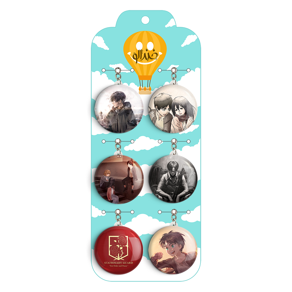 پک 6 عددی جاکلیدی خندالو طرح انیمه اتک آن تایتان (Attack on Titan) با استفاده از روکش سلفون حرارتی مات ضدخش تولید شده که خاصیت ضدخش بودن آن عمر مفید استفاده از جاکلیدی ها را افزایش میدهد. چاپ جاکلیدی ها با دستگاه های استاندارد و با بهترین سطح کیفیت صورت گرفته و طرح با شفافیتی مثال زدنی و با سلفون چسبی تولید شده است که باعث شده محصول نهایی بدون شکست نور دیده شود.