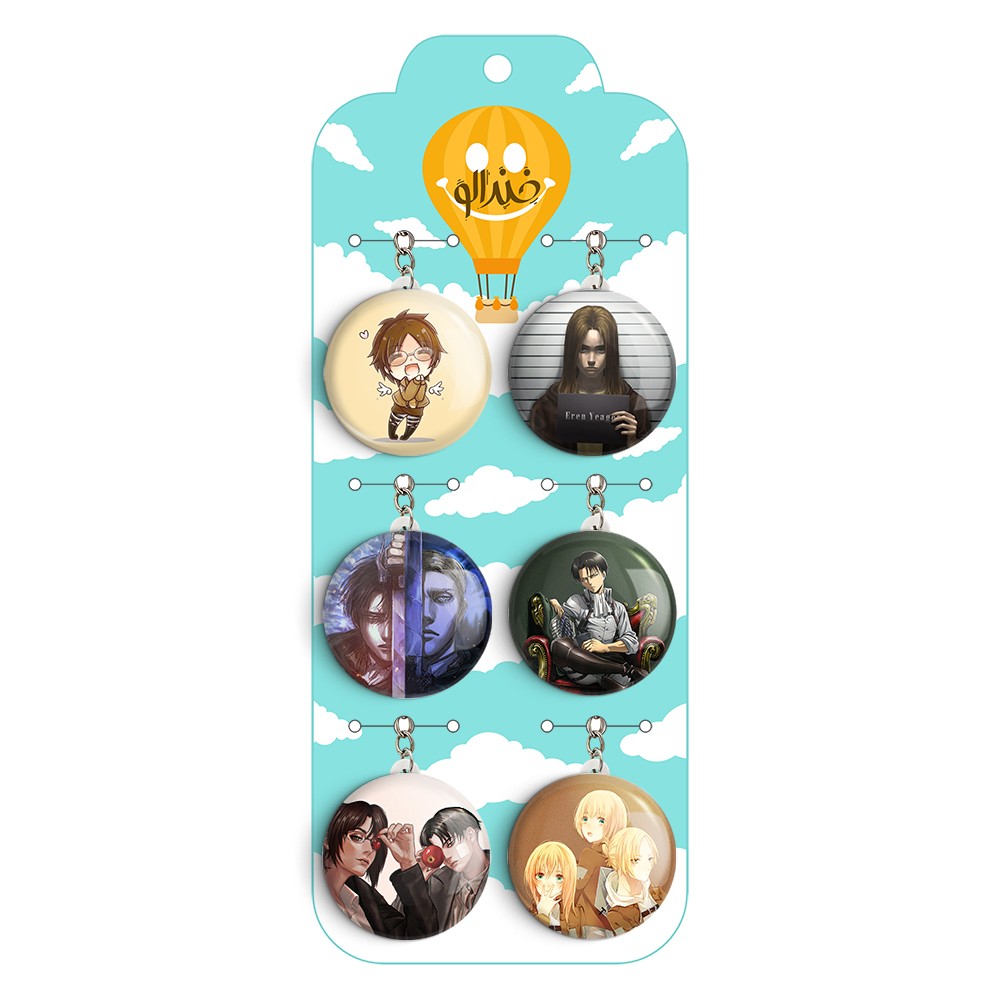 پک 6 عددی جاکلیدی خندالو طرح انیمه اتک آن تایتان (Attack on Titan) با استفاده از روکش سلفون حرارتی مات ضدخش تولید شده که خاصیت ضدخش بودن آن عمر مفید استفاده از جاکلیدی ها را افزایش میدهد. چاپ جاکلیدی ها با دستگاه های استاندارد و با بهترین سطح کیفیت صورت گرفته و طرح با شفافیتی مثال زدنی و با سلفون چسبی تولید شده است که باعث شده محصول نهایی بدون شکست نور دیده شود.