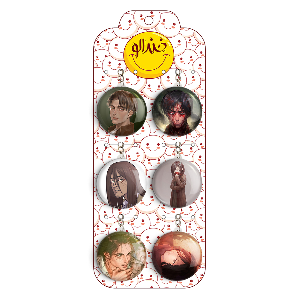 پک 6 عددی جاکلیدی خندالو طرح انیمه اتک آن تایتان (Attack on Titan) با استفاده از روکش سلفون حرارتی مات ضدخش تولید شده که خاصیت ضدخش بودن آن عمر مفید استفاده از جاکلیدی ها را افزایش میدهد. چاپ جاکلیدی ها با دستگاه های استاندارد و با بهترین سطح کیفیت صورت گرفته و طرح با شفافیتی مثال زدنی و با سلفون چسبی تولید شده است که باعث شده محصول نهایی بدون شکست نور دیده شود.