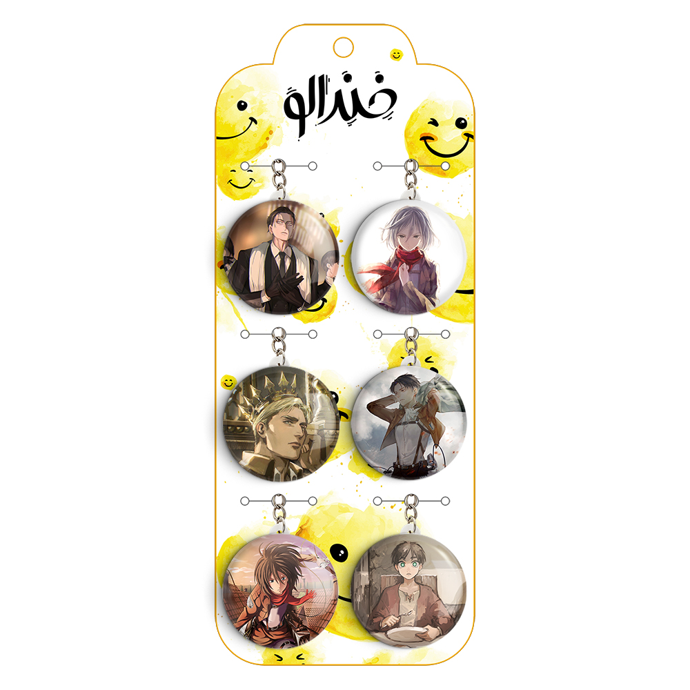 پک 6 عددی جاکلیدی خندالو طرح انیمه اتک آن تایتان (Attack on Titan) با استفاده از روکش سلفون حرارتی مات ضدخش تولید شده که خاصیت ضدخش بودن آن عمر مفید استفاده از جاکلیدی ها را افزایش میدهد. چاپ جاکلیدی ها با دستگاه های استاندارد و با بهترین سطح کیفیت صورت گرفته و طرح با شفافیتی مثال زدنی و با سلفون چسبی تولید شده است که باعث شده محصول نهایی بدون شکست نور دیده شود.