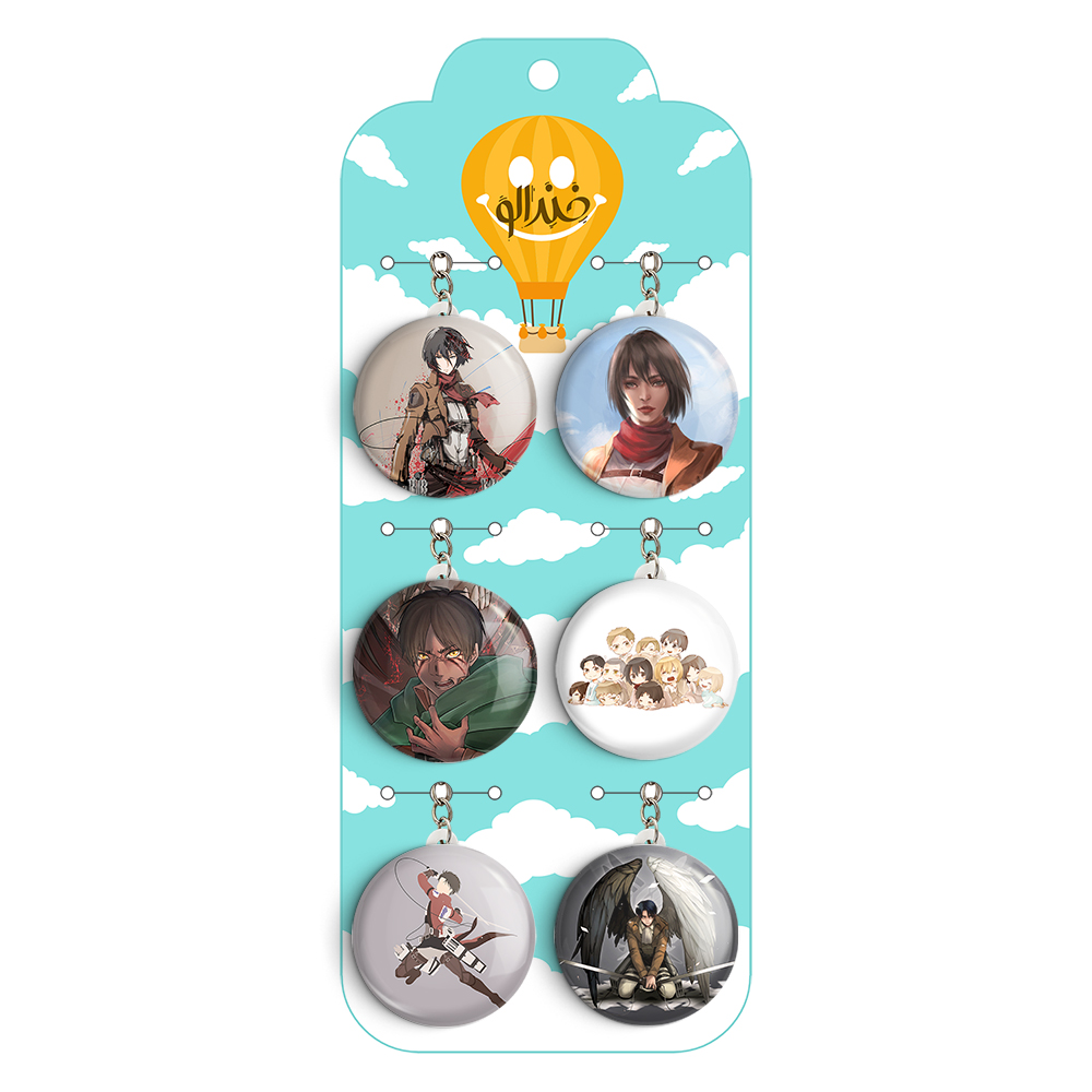 پک 6 عددی جاکلیدی خندالو طرح انیمه اتک آن تایتان (Attack on Titan) با استفاده از روکش سلفون حرارتی مات ضدخش تولید شده که خاصیت ضدخش بودن آن عمر مفید استفاده از جاکلیدی ها را افزایش میدهد. چاپ جاکلیدی ها با دستگاه های استاندارد و با بهترین سطح کیفیت صورت گرفته و طرح با شفافیتی مثال زدنی و با سلفون چسبی تولید شده است که باعث شده محصول نهایی بدون شکست نور دیده شود.