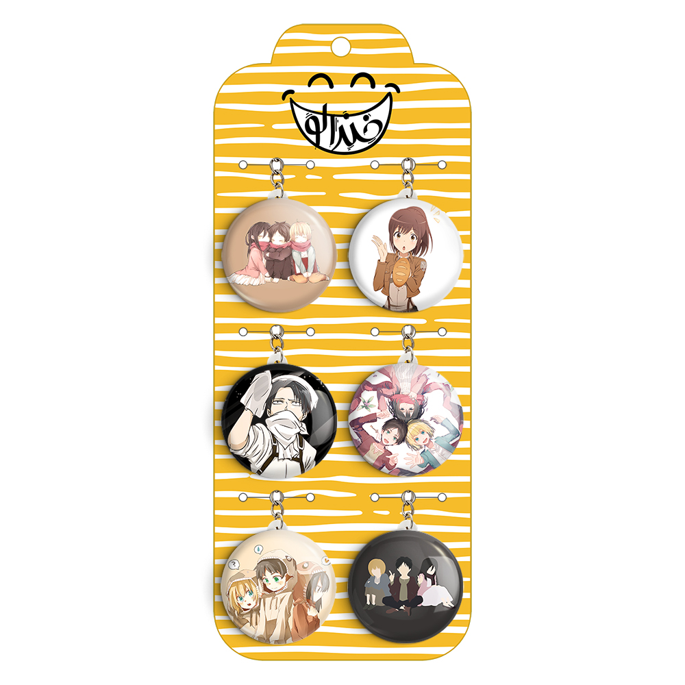 پک 6 عددی جاکلیدی خندالو طرح انیمه اتک آن تایتان (Attack on Titan) با استفاده از روکش سلفون حرارتی مات ضدخش تولید شده که خاصیت ضدخش بودن آن عمر مفید استفاده از جاکلیدی ها را افزایش میدهد. چاپ جاکلیدی ها با دستگاه های استاندارد و با بهترین سطح کیفیت صورت گرفته و طرح با شفافیتی مثال زدنی و با سلفون چسبی تولید شده است که باعث شده محصول نهایی بدون شکست نور دیده شود.