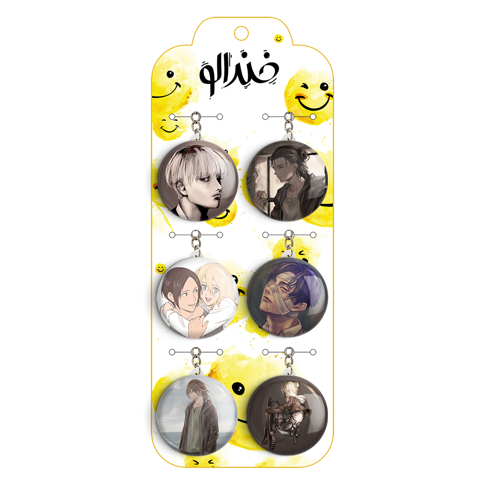 پک 6 عددی جاکلیدی خندالو طرح انیمه اتک آن تایتان (Attack on Titan) با استفاده از روکش سلفون حرارتی مات ضدخش تولید شده که خاصیت ضدخش بودن آن عمر مفید استفاده از جاکلیدی ها را افزایش میدهد. چاپ جاکلیدی ها با دستگاه های استاندارد و با بهترین سطح کیفیت صورت گرفته و طرح با شفافیتی مثال زدنی و با سلفون چسبی تولید شده است که باعث شده محصول نهایی بدون شکست نور دیده شود.