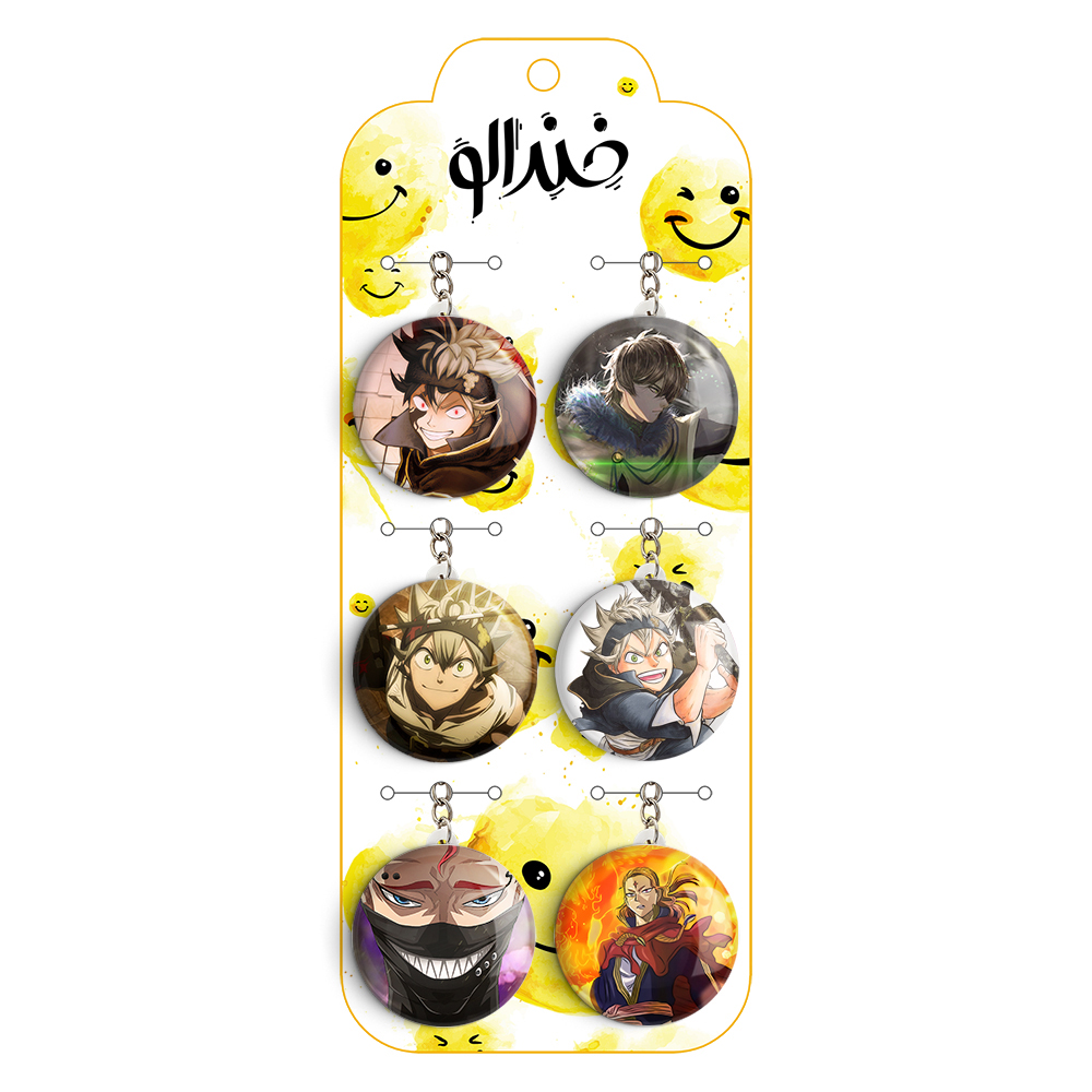 پک 6 عددی جاکلیدی خندالو طرح انیمه بلک کلاور (Black Clover) با استفاده از روکش سلفون حرارتی مات ضدخش تولید شده که خاصیت ضدخش بودن آن عمر مفید استفاده از جاکلیدی ها را افزایش میدهد. چاپ جاکلیدی ها با دستگاه های استاندارد و با بهترین سطح کیفیت صورت گرفته و طرح با شفافیتی مثال زدنی و با سلفون چسبی تولید شده است که باعث شده محصول نهایی بدون شکست نور دیده شود. همچنین بسته بندی جذاب و مینیمال جاکلیدی ها، آنها را محصولی مناسب هدیه کرده است. زنجیر و حلقه بکار برده شده در جاکلیدی خندالو از نوع حلقه درجه یک و ضخیم و محکم بوده و حین استفاده آسیب نمی بیند. قطعی پشتی جاکلیدی از جنس ABS شفاف سفید رنگ تولید شده که در مقابل خط و خش مقاوم بوده و به هیچ عنوان دچار شکستگی نخواهد شد.
