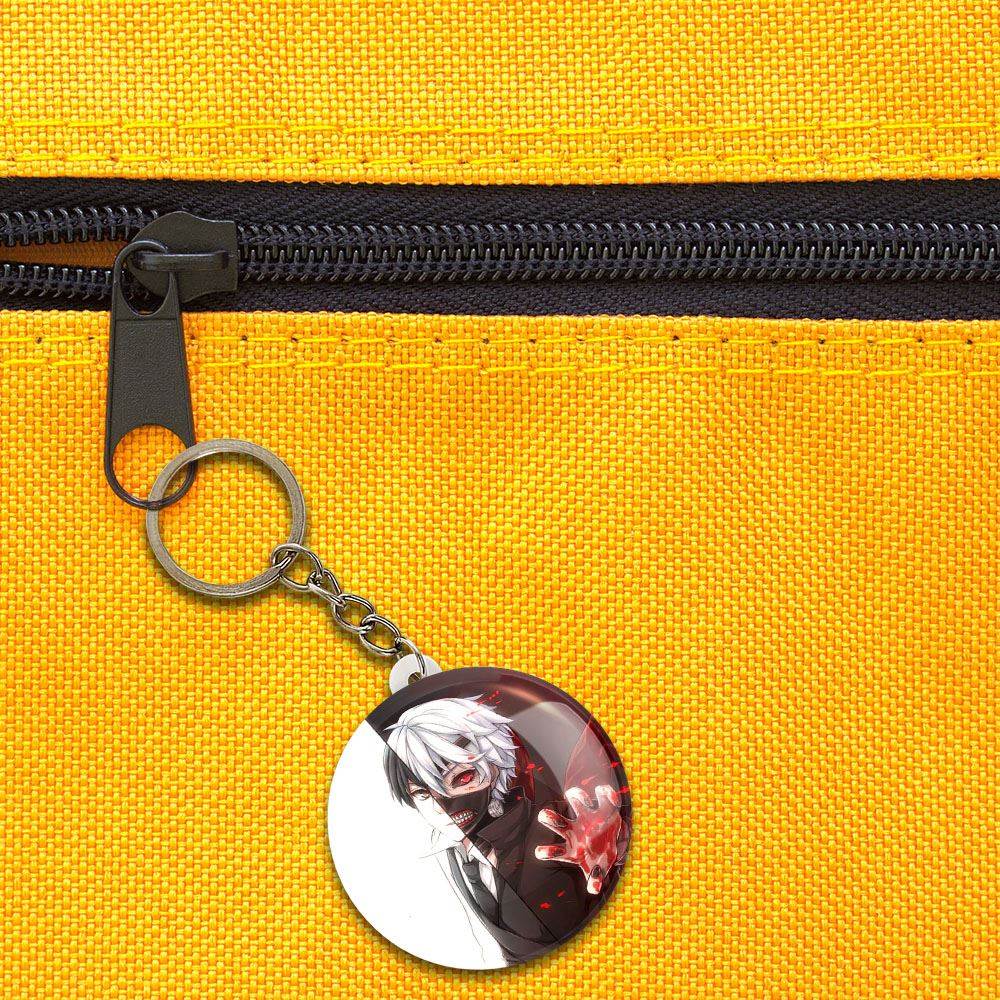 خندالو جاکلیدی انیمه توکیو غول Tokyo Ghoul را با استفاده از روکش سلفون حرارتی مات مخملی ضدخش تولید می کند که خاصیت ضدخش بودن آن، کمک میکند تا عمر مفید استفاده از جاکلیدی ها افزایش پیدا کند و با یک خراش ساده مثل برخورد سطح ناخن با محصول، دچار و خط و خش نشود.
