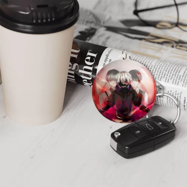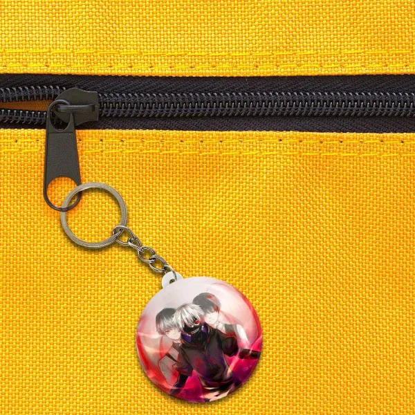 خندالو جاکلیدی انیمه توکیو غول Tokyo Ghoul را با استفاده از روکش سلفون حرارتی مات مخملی ضدخش تولید می کند که خاصیت ضدخش بودن آن، کمک میکند تا عمر مفید استفاده از جاکلیدی ها افزایش پیدا کند و با یک خراش ساده مثل برخورد سطح ناخن با محصول، دچار و خط و خش نشود.