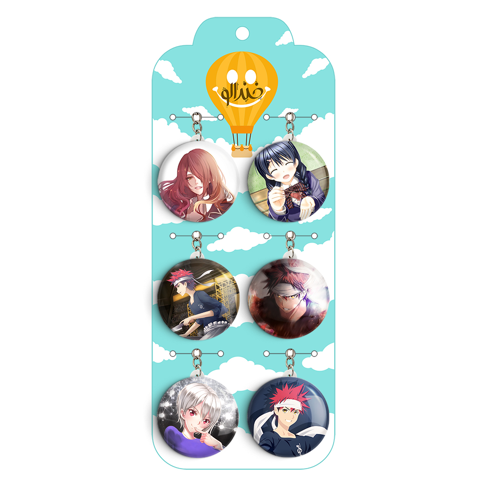 پک 6 عددی جاکلیدی خندالو طرح انیمه جنگ غذاها (Food Wars) با استفاده از روکش سلفون حرارتی مات ضدخش تولید شده که خاصیت ضدخش بودن آن عمر مفید استفاده از جاکلیدی ها را افزایش میدهد. چاپ جاکلیدی ها با دستگاه های استاندارد و با بهترین سطح کیفیت صورت گرفته و طرح با شفافیتی مثال زدنی و با سلفون چسبی تولید شده است که باعث شده محصول نهایی بدون شکست نور دیده شود.
