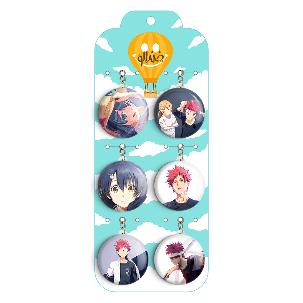 پک 6 عددی جاکلیدی خندالو طرح انیمه جنگ غذاها (Food Wars) با استفاده از روکش سلفون حرارتی مات ضدخش تولید شده که خاصیت ضدخش بودن آن عمر مفید استفاده از جاکلیدی ها را افزایش میدهد. چاپ جاکلیدی ها با دستگاه های استاندارد و با بهترین سطح کیفیت صورت گرفته و طرح با شفافیتی مثال زدنی و با سلفون چسبی تولید شده است که باعث شده محصول نهایی بدون شکست نور دیده شود.