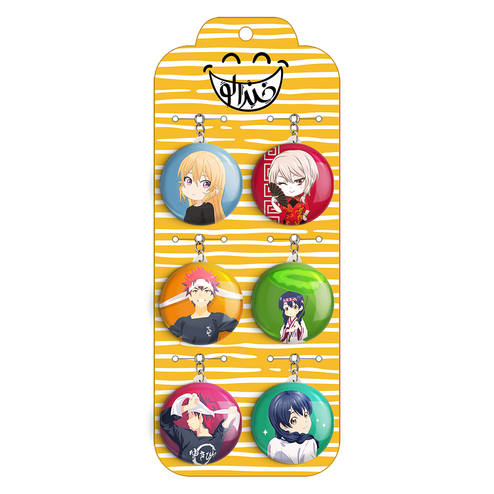 پک 6 عددی جاکلیدی خندالو طرح انیمه جنگ غذاها (Food Wars) با استفاده از روکش سلفون حرارتی مات ضدخش تولید شده که خاصیت ضدخش بودن آن عمر مفید استفاده از جاکلیدی ها را افزایش میدهد. چاپ جاکلیدی ها با دستگاه های استاندارد و با بهترین سطح کیفیت صورت گرفته و طرح با شفافیتی مثال زدنی و با سلفون چسبی تولید شده است که باعث شده محصول نهایی بدون شکست نور دیده شود.