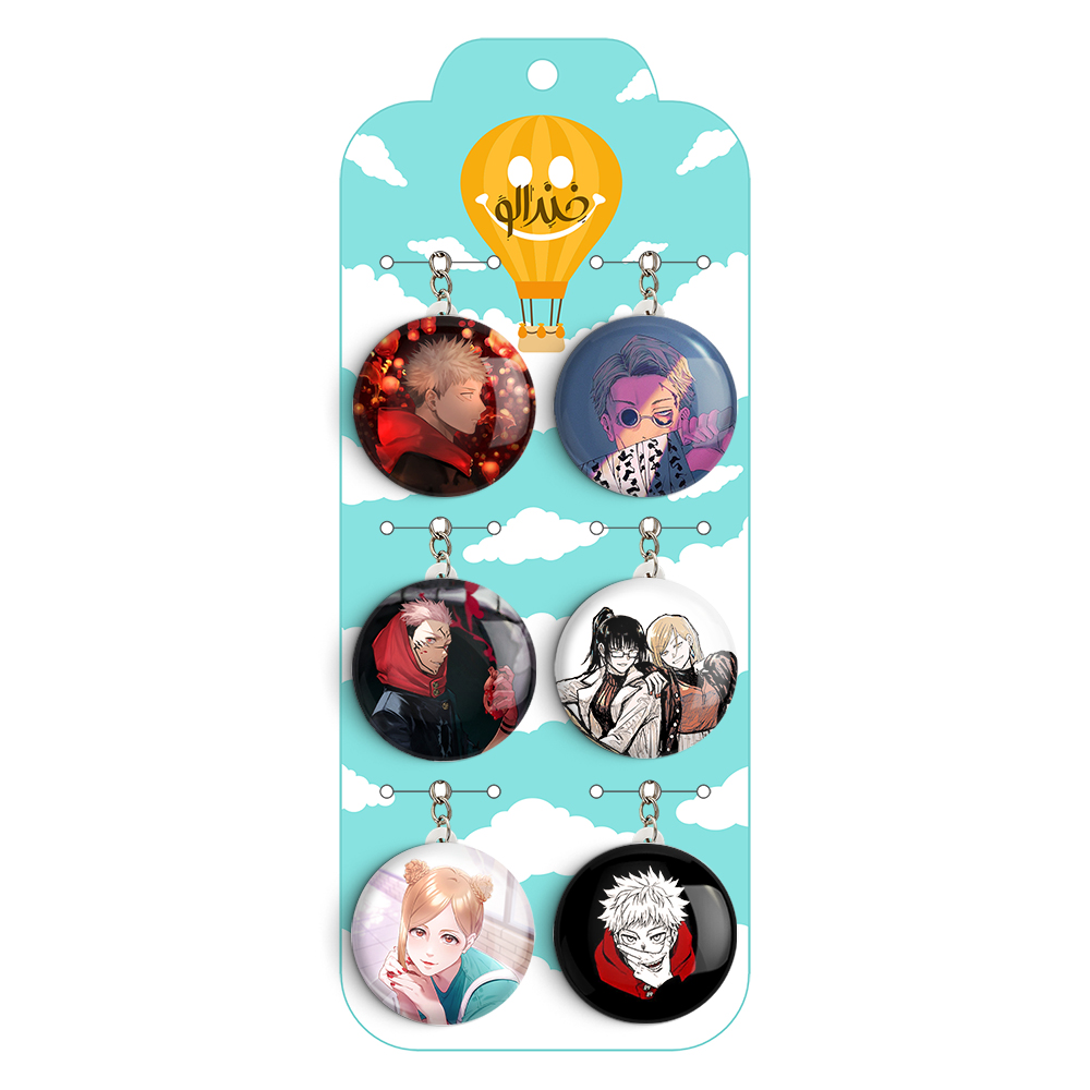 پک 6 عددی جاکلیدی خندالو طرح انیمه جوجوتسوکایزن (Jujutsu Kaisen) با استفاده از روکش سلفون حرارتی مات ضدخش تولید شده که خاصیت ضدخش بودن آن عمر مفید استفاده از جاکلیدی ها را افزایش میدهد. چاپ جاکلیدی ها با دستگاه های استاندارد و با بهترین سطح کیفیت صورت گرفته و طرح با شفافیتی مثال زدنی و با سلفون چسبی تولید شده است که باعث شده محصول نهایی بدون شکست نور دیده شود.