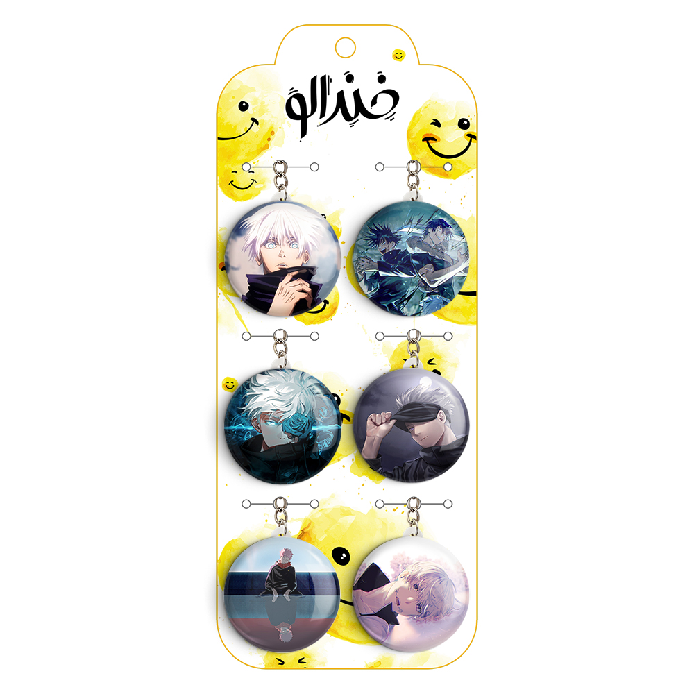 پک 6 عددی جاکلیدی خندالو طرح انیمه جوجوتسوکایزن (Jujutsu Kaisen) با استفاده از روکش سلفون حرارتی مات ضدخش تولید شده که خاصیت ضدخش بودن آن عمر مفید استفاده از جاکلیدی ها را افزایش میدهد. چاپ جاکلیدی ها با دستگاه های استاندارد و با بهترین سطح کیفیت صورت گرفته و طرح با شفافیتی مثال زدنی و با سلفون چسبی تولید شده است که باعث شده محصول نهایی بدون شکست نور دیده شود.