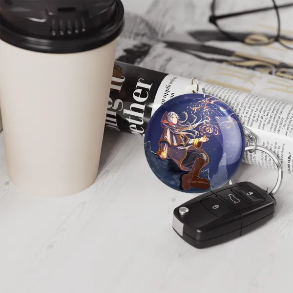 خندالو جاکلیدی انیمه فریرن (Frieren) را با استفاده از روکش سلفون حرارتی مات مخملی ضدخش تولید می کند که خاصیت ضدخش بودن آن، کمک میکند تا عمر مفید استفاده از جاکلیدی ها افزایش پیدا کند و با یک خراش ساده مثل برخورد سطح ناخن با محصول، دچار و خط و خش نشود.