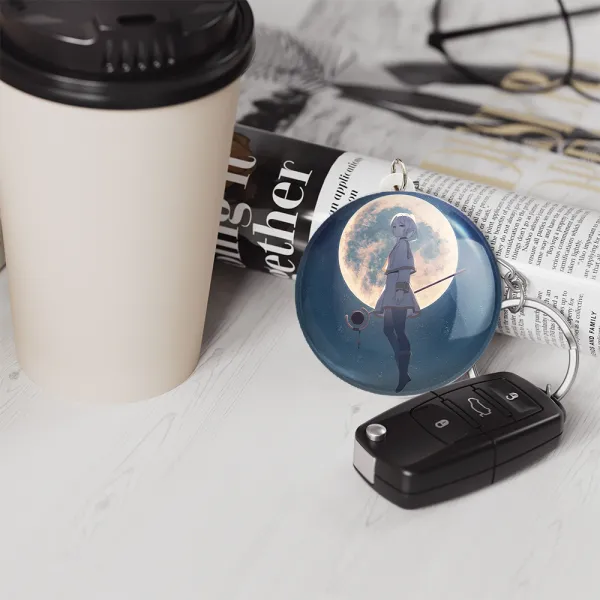 خندالو جاکلیدی انیمه فریرن (Frieren) را با استفاده از روکش سلفون حرارتی مات مخملی ضدخش تولید می کند که خاصیت ضدخش بودن آن، کمک میکند تا عمر مفید استفاده از جاکلیدی ها افزایش پیدا کند و با یک خراش ساده مثل برخورد سطح ناخن با محصول، دچار و خط و خش نشود.