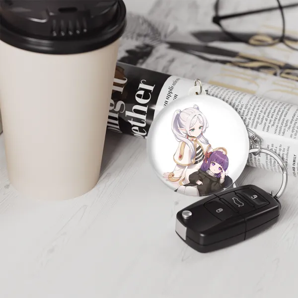 خندالو جاکلیدی انیمه فریرن (Frieren) را با استفاده از روکش سلفون حرارتی مات مخملی ضدخش تولید می کند که خاصیت ضدخش بودن آن، کمک میکند تا عمر مفید استفاده از جاکلیدی ها افزایش پیدا کند و با یک خراش ساده مثل برخورد سطح ناخن با محصول، دچار و خط و خش نشود.